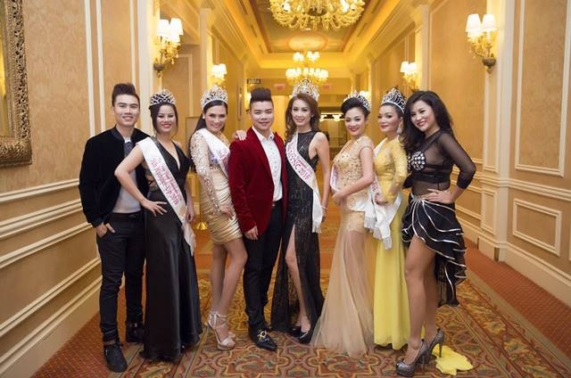 Hoa hậu người Việt thế giới Brandy Ngô (váy đen) cũng là một trong những giám khảo của cuộc thi. Ca sĩ Trish Lương (bìa phải) từng gây ấn tượng khi tham gia Vietnam Idol, The Voice, The Winner Is tại Việt Nam, cô nhận được tình cảm của khán giả khi tham gia trình diễn đêm chung kết với ca khúc sôi động Bang Bang Boom Boom cùng vũ công Hollywood. Ca sĩ Thùy Vân (cạnh Minh Chánh) tới chúc mừng đêm tiệc. |