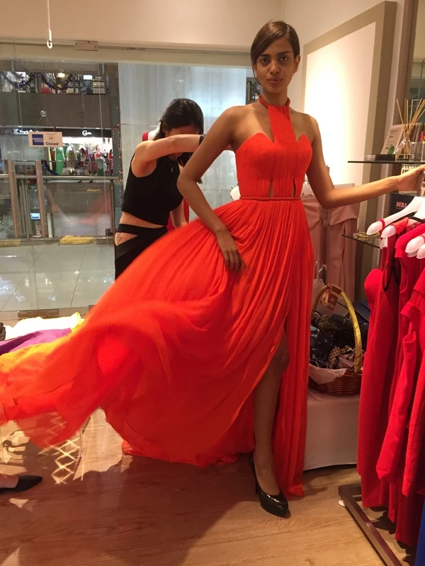 | Trang phục giúp Rathi khoe được vóc dáng thanh mảnh, gợi cảm với phần vai trần quyến rũ. Đặc biệt, phần xẻ chân khá cao giúp người đẹp khoe đôi chân dài miên man. Nhờ chất liệu khá nhẹ nhàng, bay bổng nên thiết kế này càng khiến Hoa hậu Singapore trở nên uyển chuyển trong từng bước đi. |