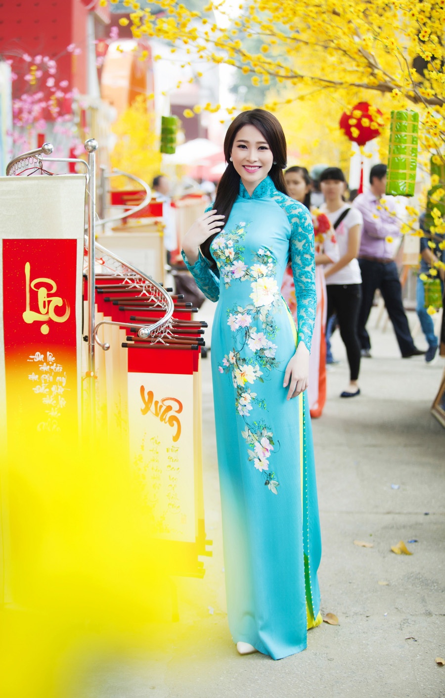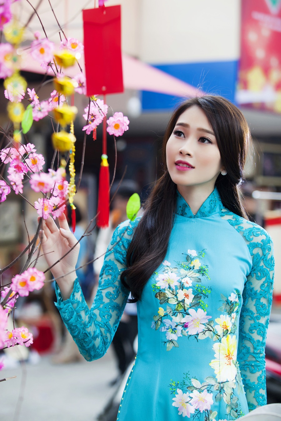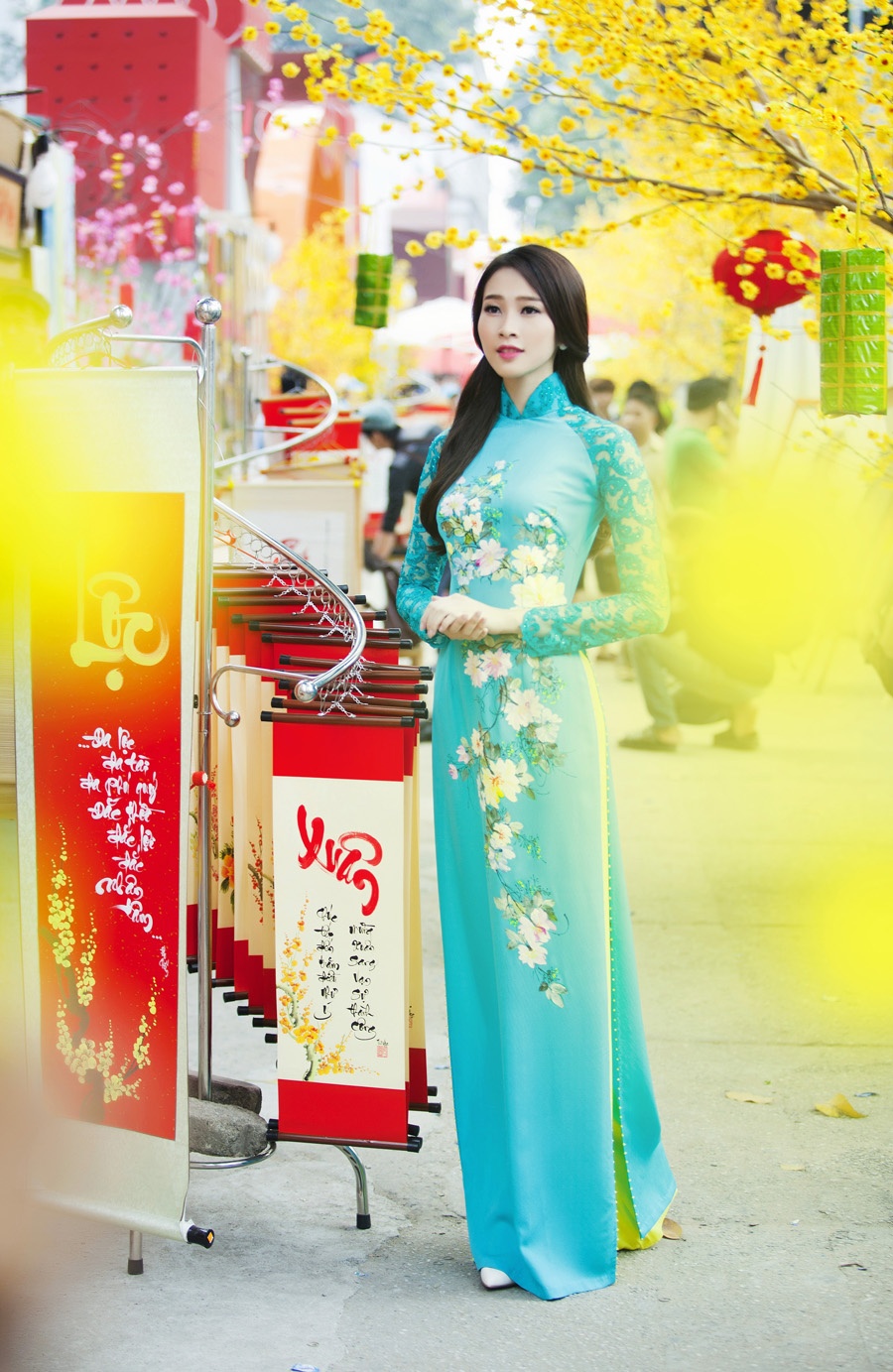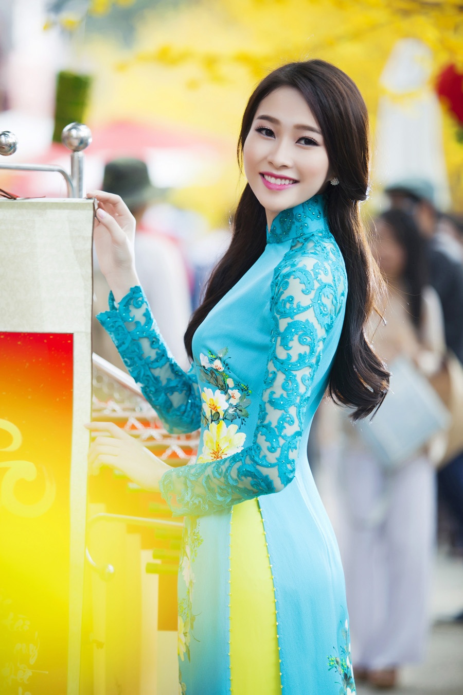 Sở hữu vóc dáng thanh mảnh, vẻ đẹp dịu dàng gần gũi, hoa hậu trở thành một trong những mỹ nhân mặc áo dài đẹp nhất. Đây cũng là dịp cô phát huy lợi thế hình ảnh trong những khung hình mùa xuân.