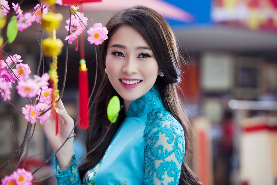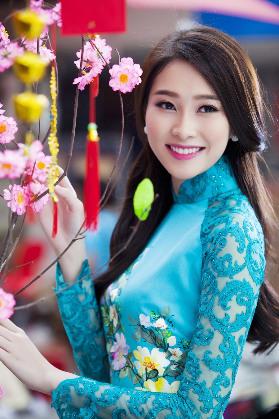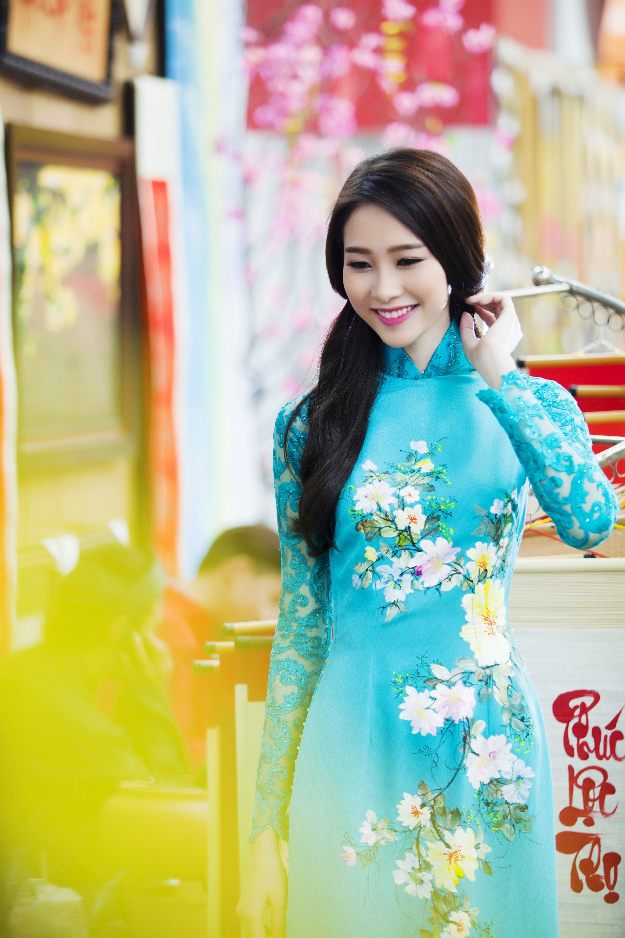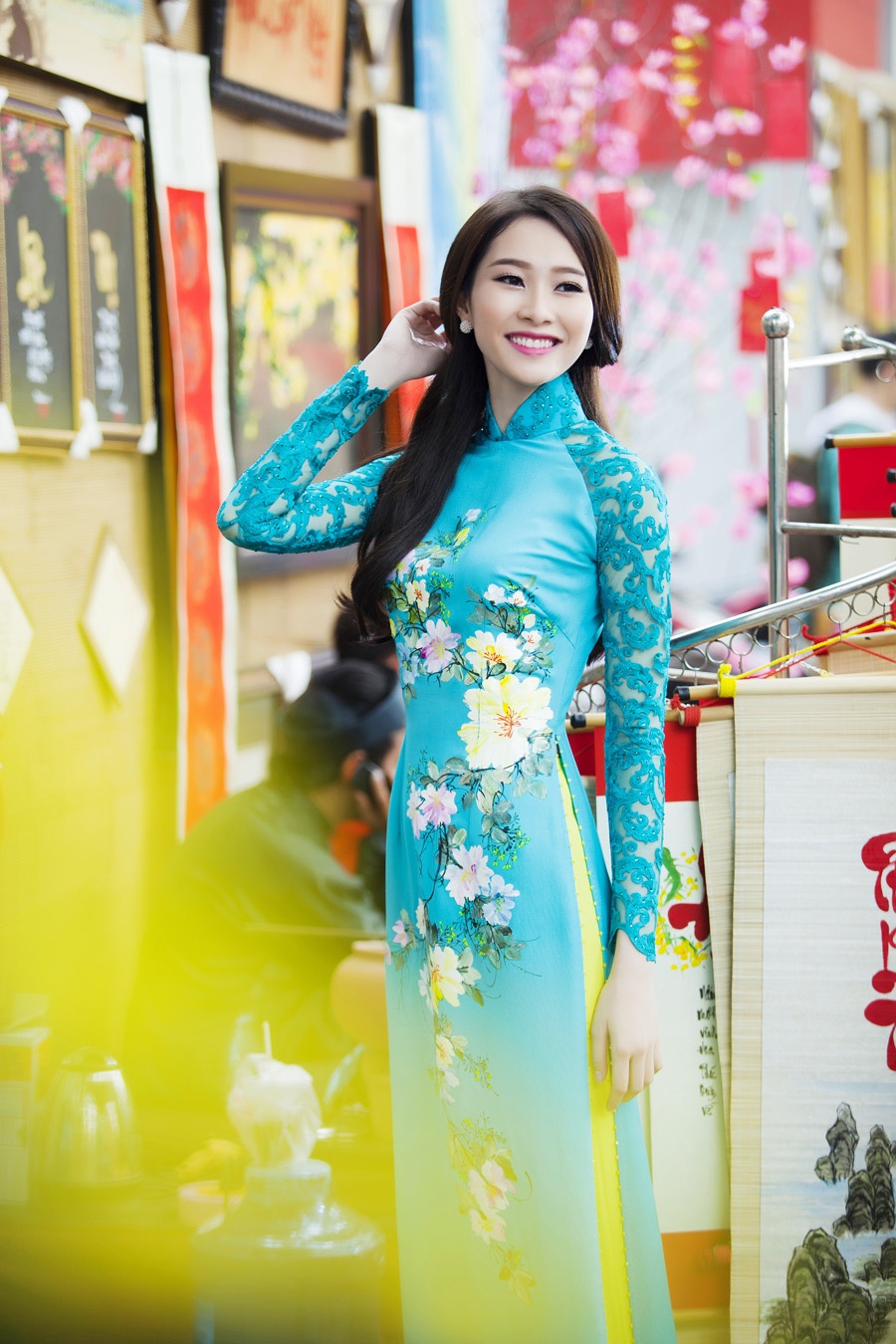Sở hữu vóc dáng thanh mảnh, vẻ đẹp dịu dàng gần gũi, hoa hậu trở thành một trong những mỹ nhân mặc áo dài đẹp nhất. Đây cũng là dịp cô phát huy lợi thế hình ảnh trong những khung hình mùa xuân.