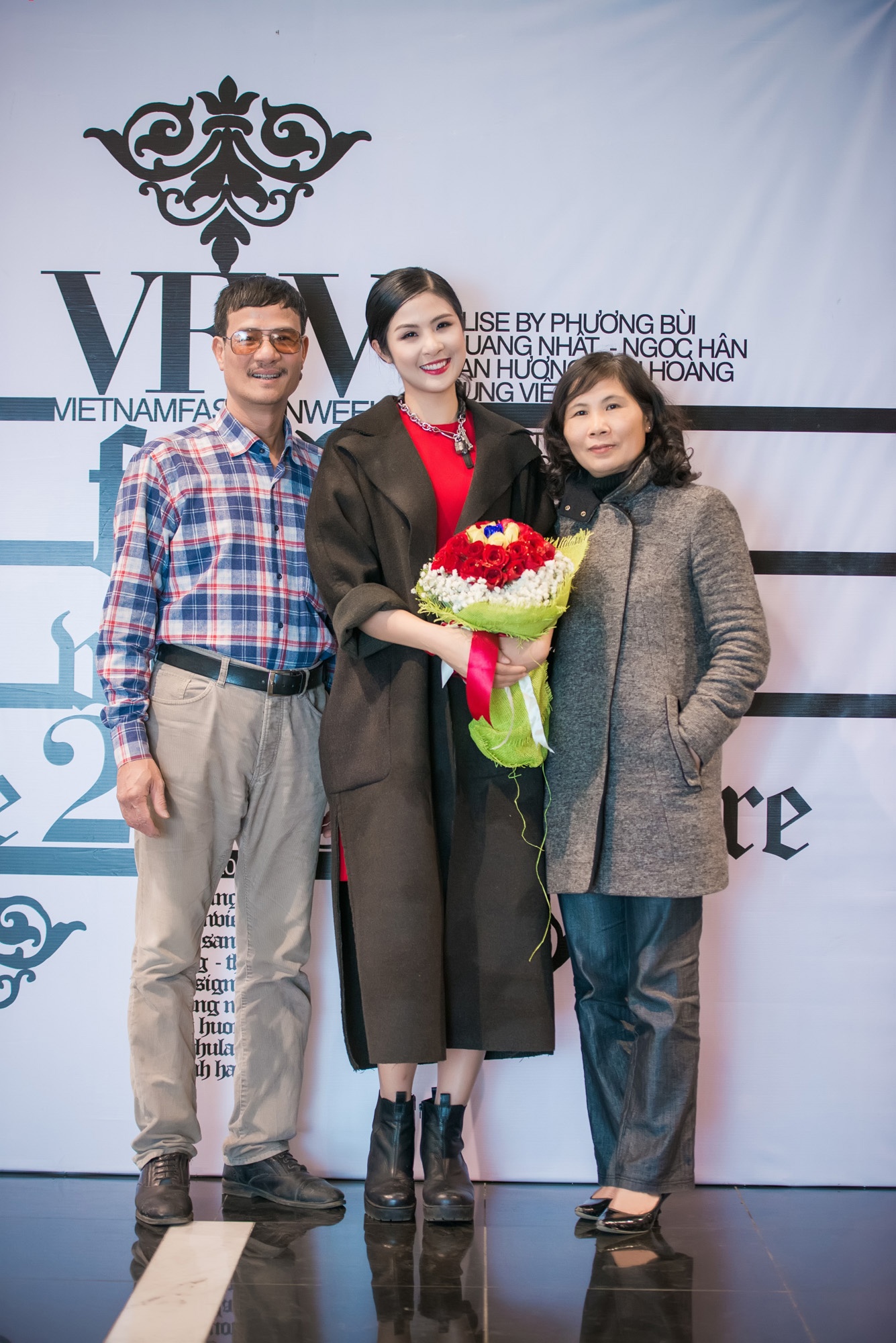 | Đây là lần thứ 3 hoa hậu Ngọc Hân tham dự Tuần lễ thời trang Việt Nam với tư cách nhà thiết kế. Bố mẹ hoa hậu đến ủng hộ con gái ra mắt bộ sưu tập mới. |