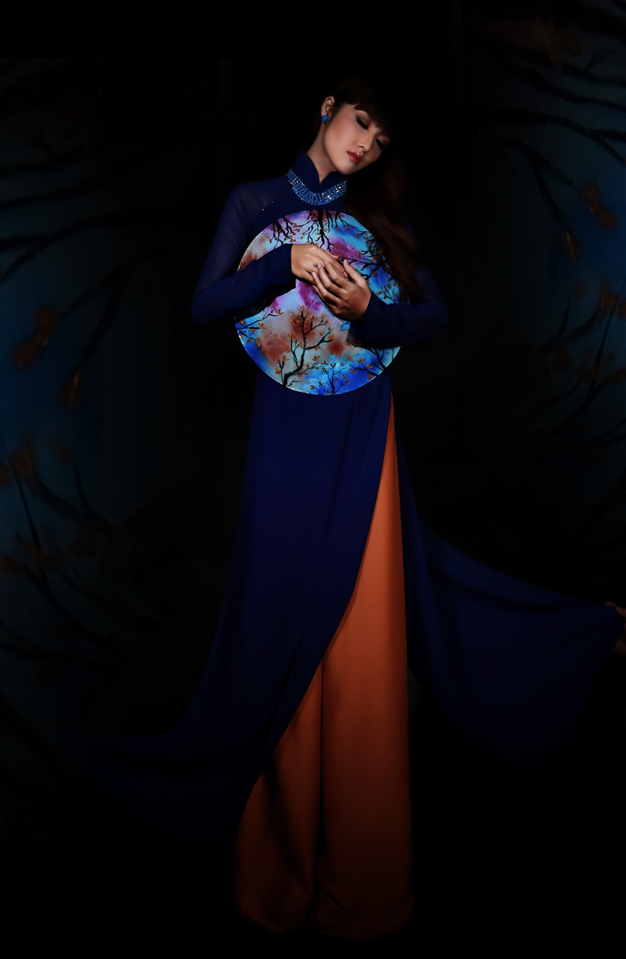 | Tà áo dài có kiểu dáng đơn giản nhưng được dựng phom cẩn thận nhằm tôn lên vẻ đẹp hình thể của người phụ nữ. |