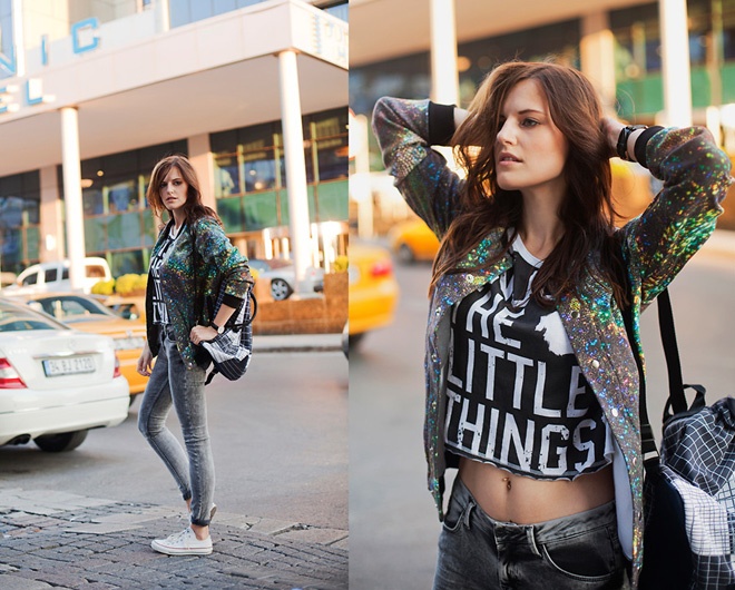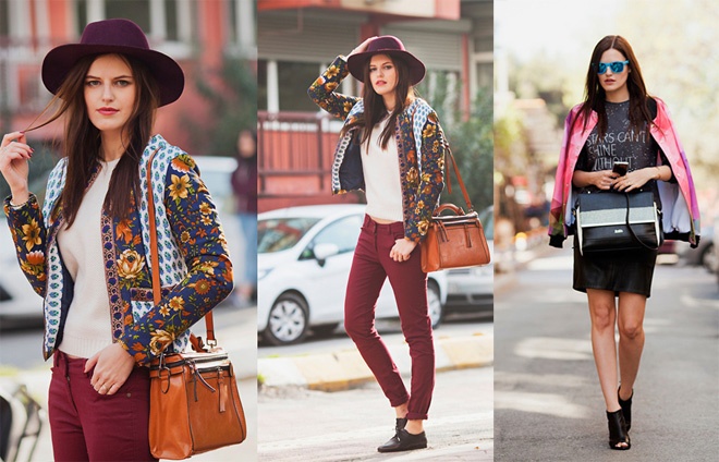 | Viktoriya Sener, biểu tượng thời trang của Thổ Nhĩ Kỳ, thật nổi bật trên phố với các kiểu áo khoác bomber sặc sỡ. |