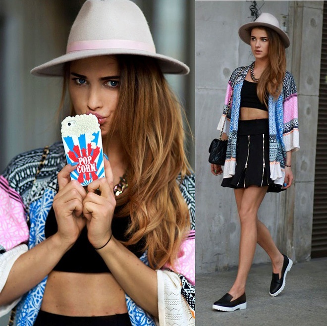 | Một kiểu áo khoác kimono rất đẹp đôi với set đồ nguyên cây đen, cũng của Juliett Kuczynska. |