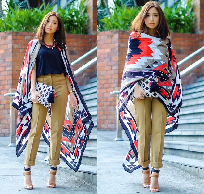 | Kryz Uy khiến người đối diện bất ngờ với cách dùng khăn choàng làm áo khoác đầy sáng tạo. Màu sắc nóng bỏng giúp biểu tượng thời trang Phillipines thêm nổi bật trên phố mùa hè. |