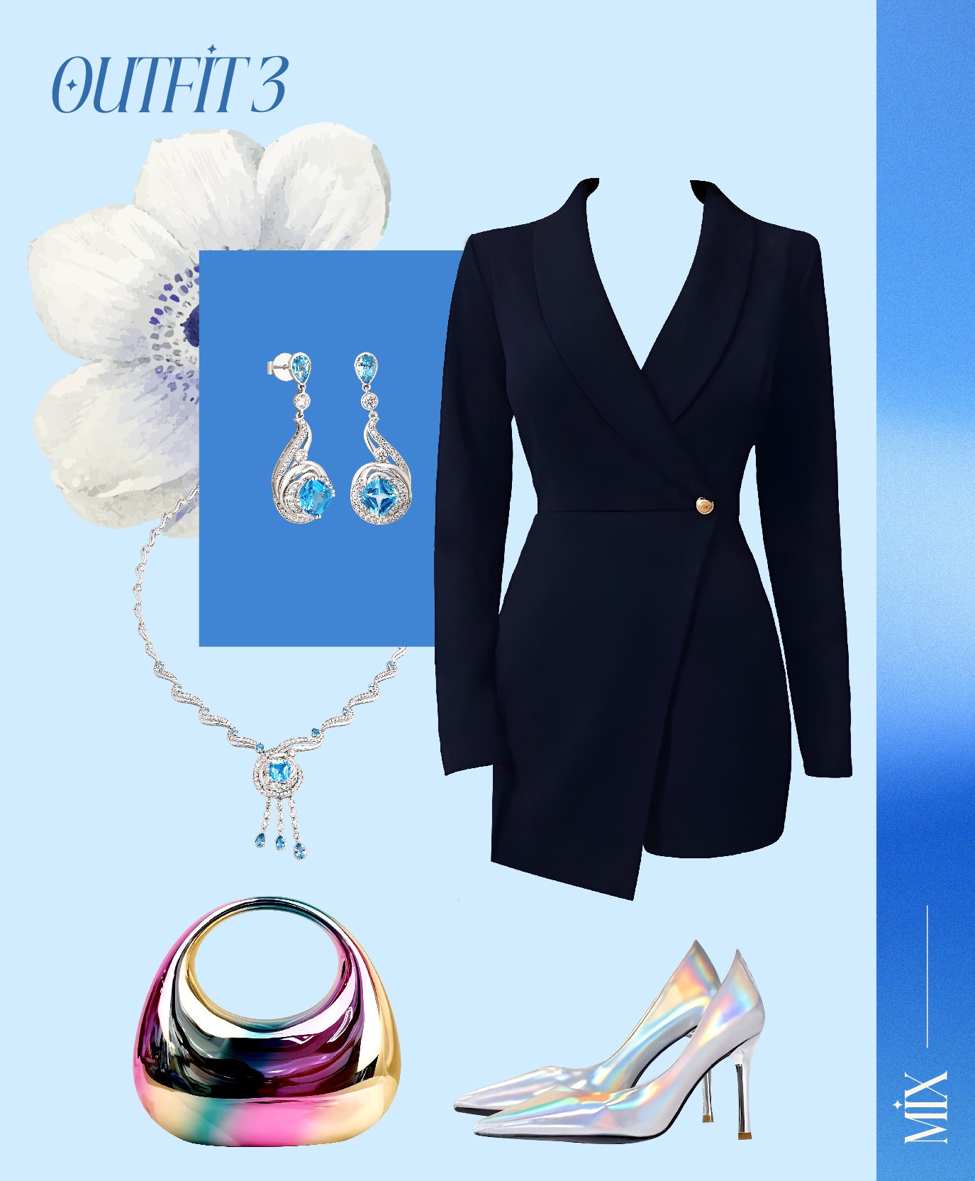 Gợi ý bản phối trang phục cuối cùng cho mùa tiệc tùng cuối năm gọi tên phong cách sang trọng, nổi bật cho các quý cô. Không sa đà vào các chi tiết rườm rà, chiếc đầm vest màu xanh cobalt đậm cách điệu cho các quý cô một phong thái trưởng thành và mạnh mẽ.