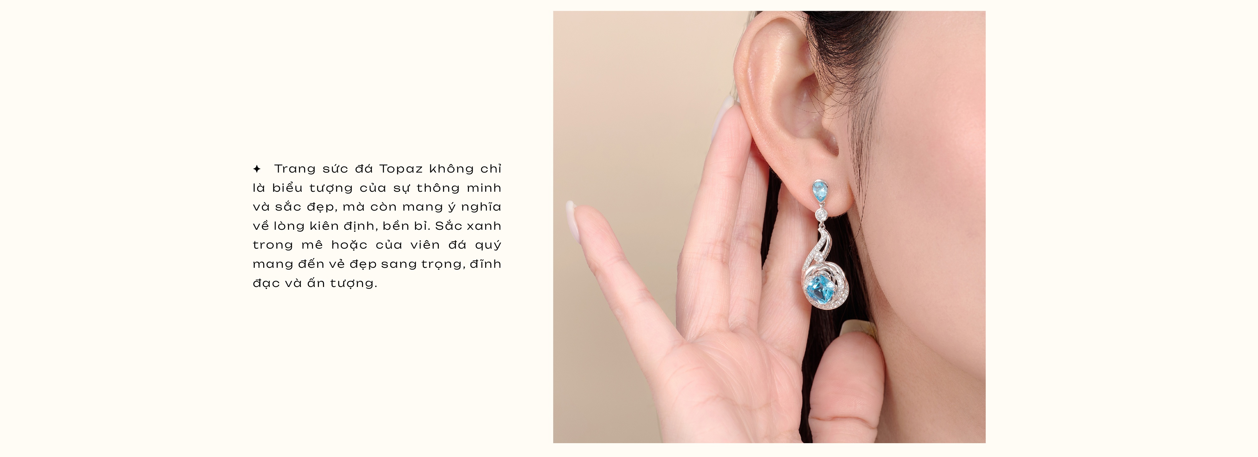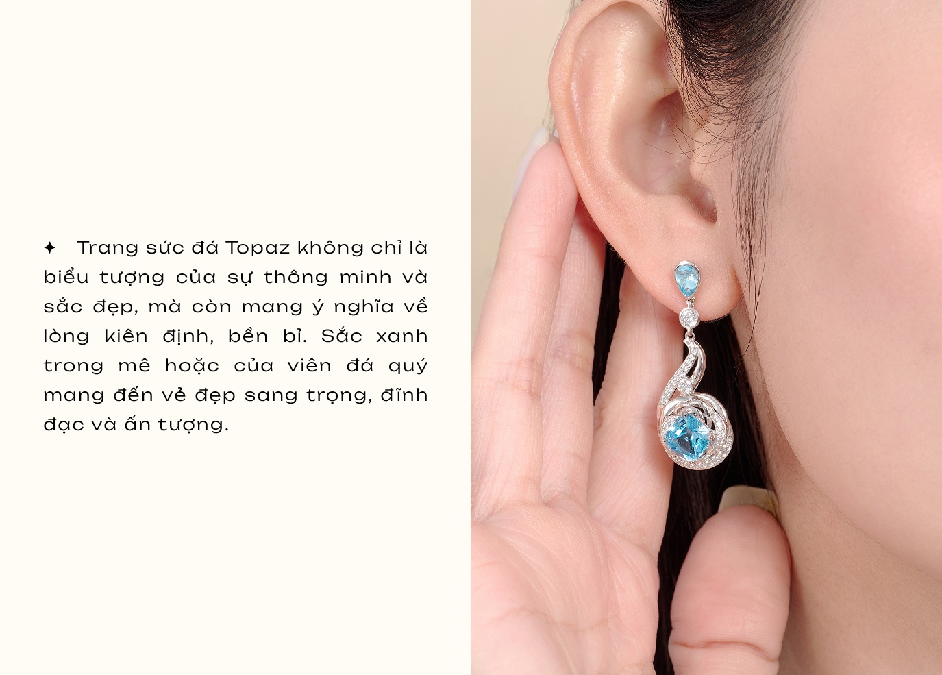 Xanh cobalt đậm là một màu sắc không kém phần cuốn hút để nàng tỏa sáng trong bữa tiệc. Để tạo dấu ấn sắc màu rực rỡ hơn, nàng có thể phối cùng trang sức đính đá quý của PNJ trong BST Audax Rosa như bông tai và dây cổ vàng trắng đính đá topaz.