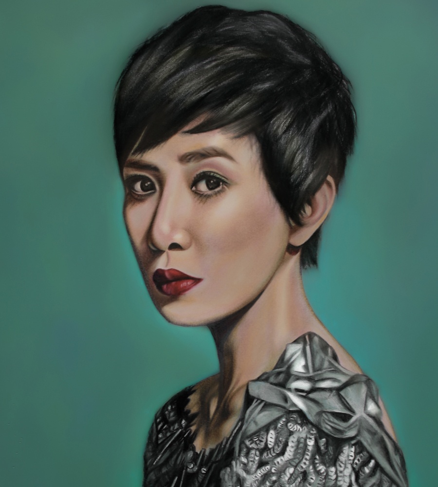 | Trong nhiều tháng nay, Phan Đăng Hoàng đã tích cực thực hiện các tác phẩm chân dung những người nổi tiếng tham gia show diễn. Trong ảnh là bức vẽ của “Hoa hậu TVB” Xa Thi Mạn. |