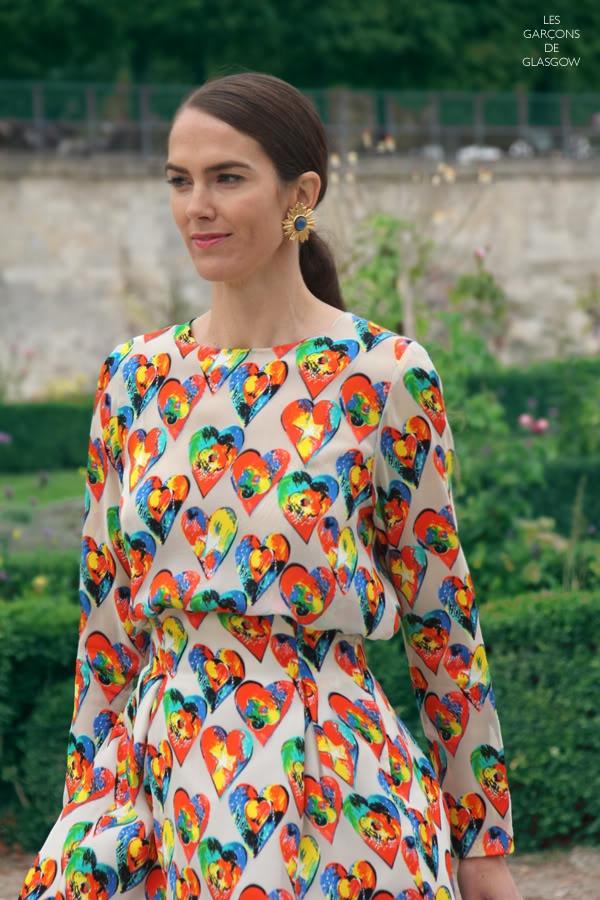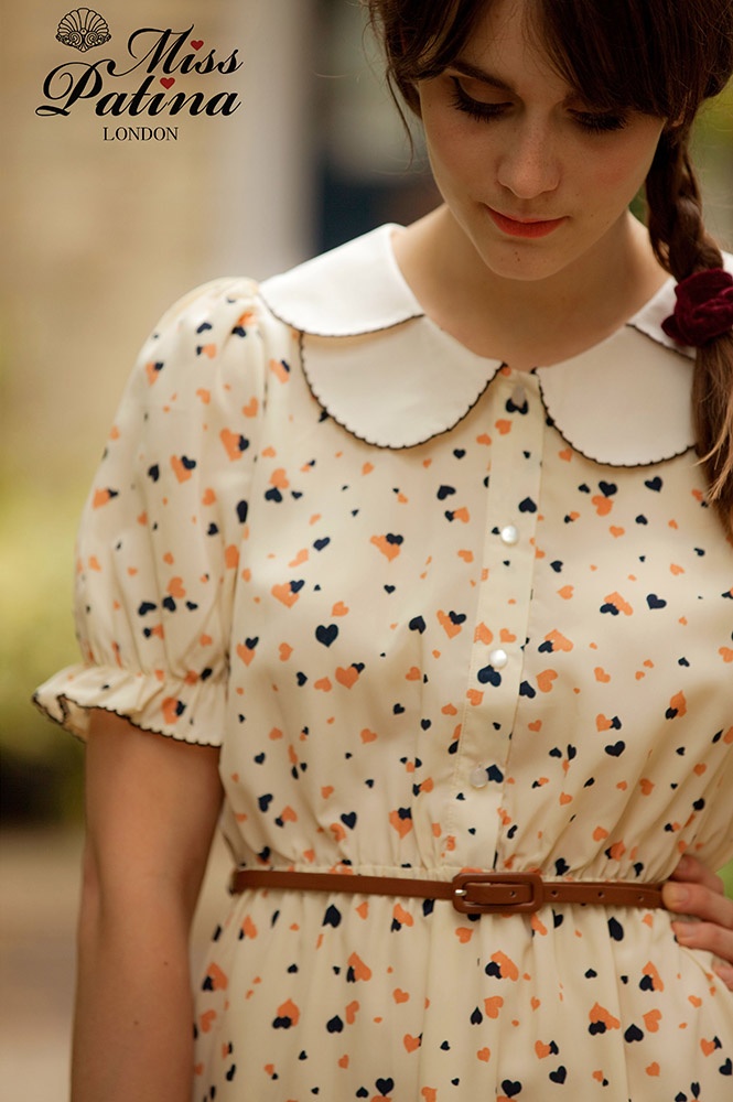 | Một chút vintage cho cô nàng lãng mạn với váy xòe in họa tiết trái tim bé xíu. |