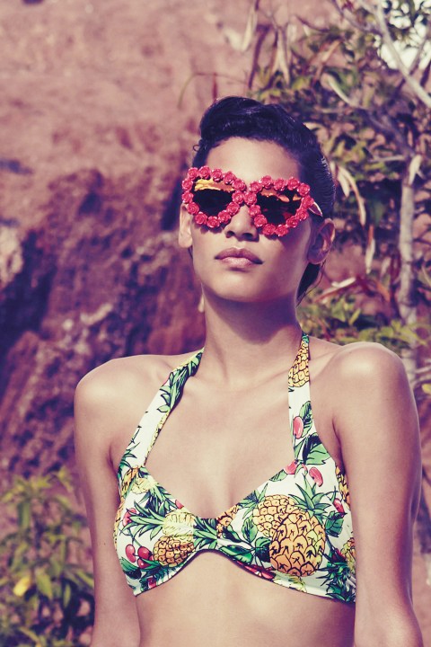 | Crop top họa tiết trái dứa thích hợp với phụ kiện mang sắc màu neon nóng bỏng. |