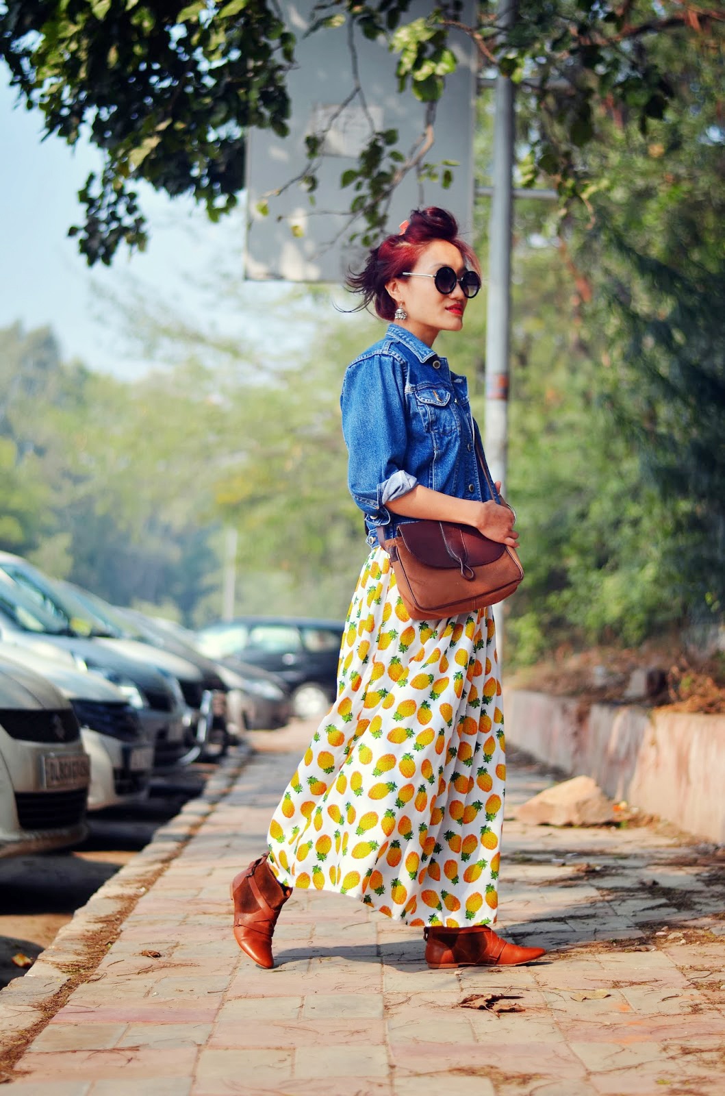 | Xuống phố dịu dàng với đầm maxi mix kèm denim jacket trong ngày nắng. |
