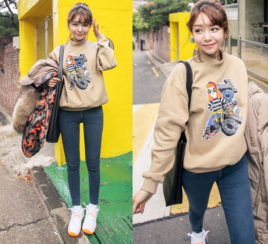 | Bên cạnh họa tiết kẻ, họa tiết hoa truyền thống thì trang phục in các nhân vật hoạt hình, họa tiết hình thú cưng rất được các cô gái trẻ yêu thích trong ngày lạnh. |
