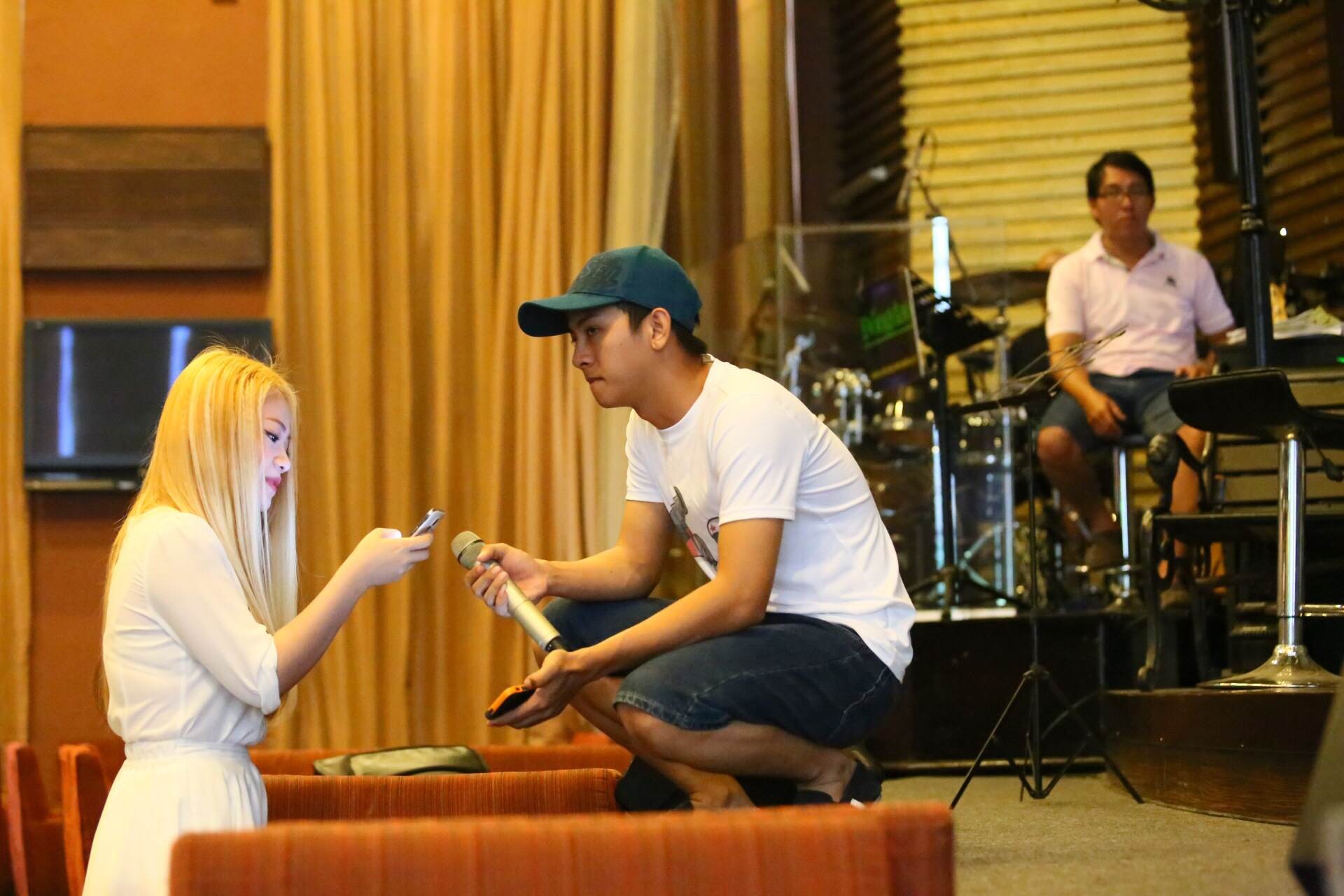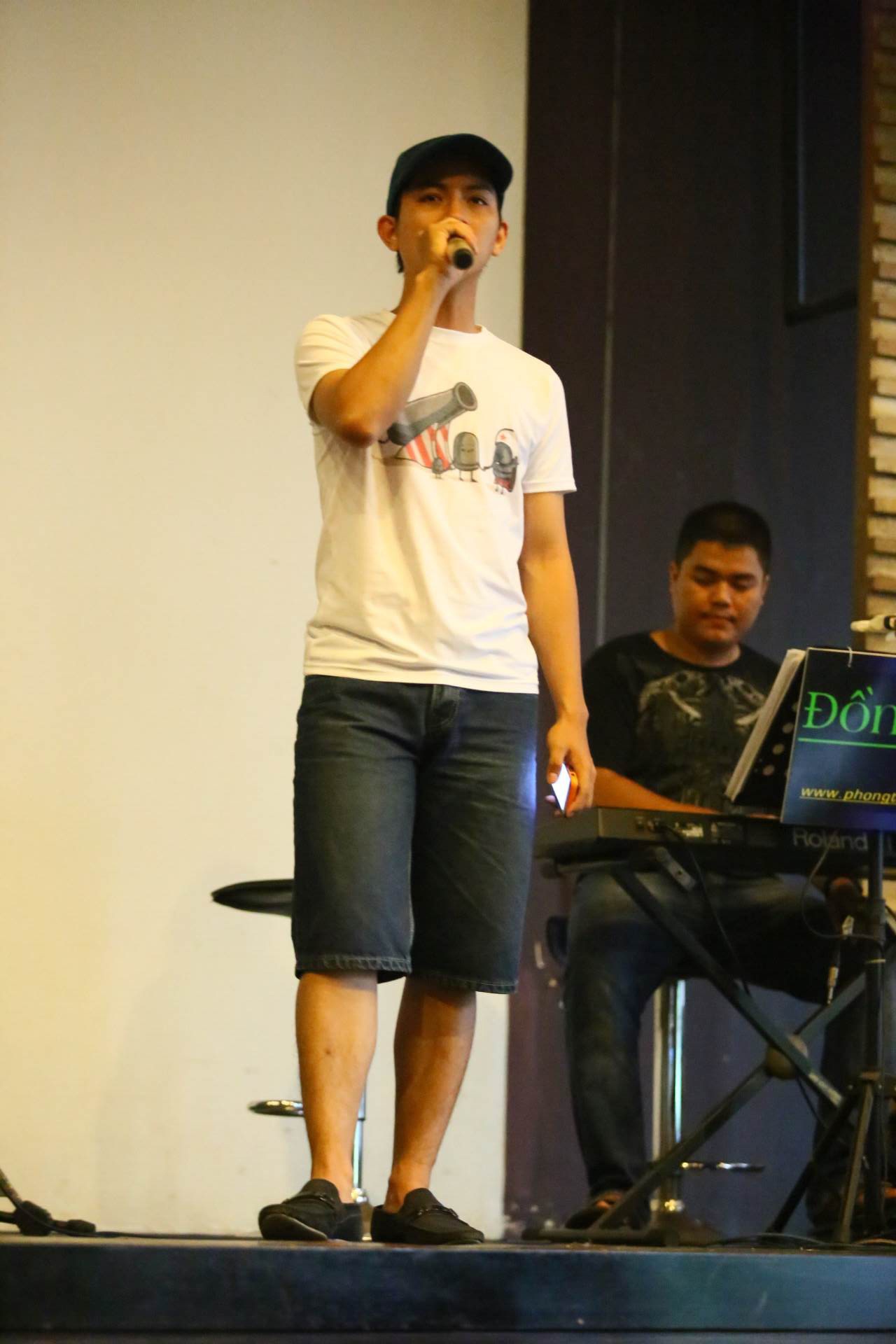| Chiều 25/7, Hoài Lâm đã có mặt tại phòng trà Đồng Dao TP.HCM để tập luyện cho mini show của anh được diễn ra trong tối cùng ngày. |