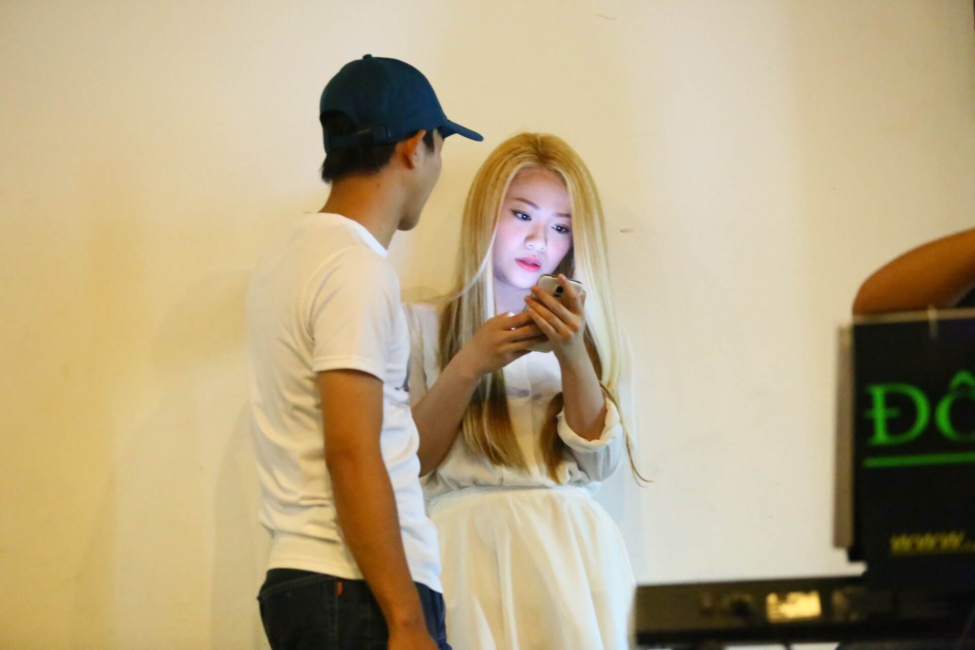 | Mi-A và Hoài Lâm sẽ trình diễn 1 tiết mục song ca nên cả hai cùng nhau bàn luận ý tưởng trong quá trình tập luyện. |