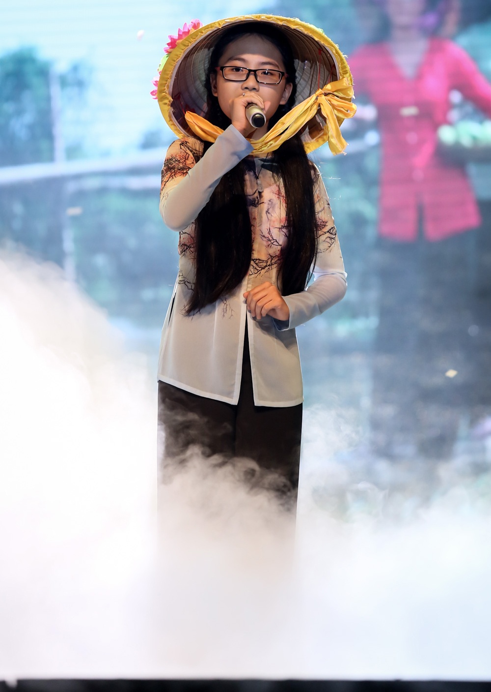 | Phương Mỹ Chi khoe chất giọng ngọt lịm trong các ca khúc Quê hương mẹ hiền, Áo mới Cà Mau. Á quân The Voice Kids 2013 còn trổ tài vừa hát vừa múa điêu luyện. |