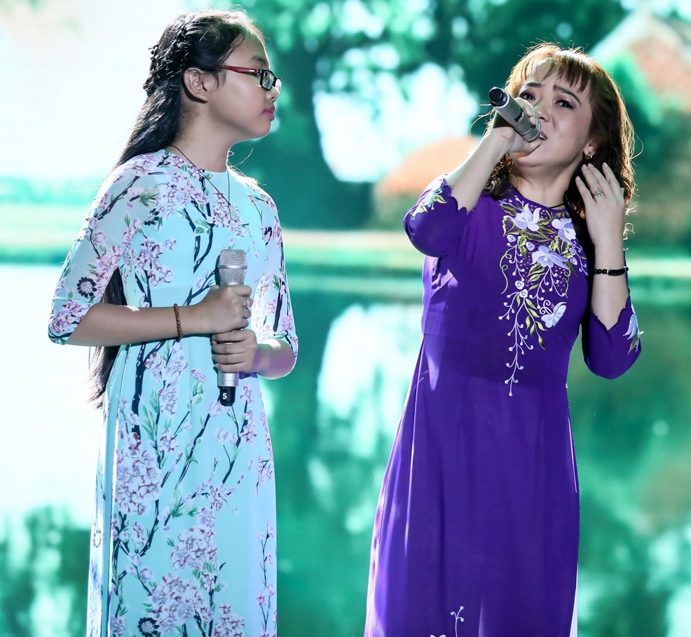 | Sau đó, nữ ca sĩ nhí diện áo dài, song ca cùng cô ruột. Quế Như là người dạy dỗ và đồng hành cùng "chị Bảy" suốt thời gian tham gia cuộc thi ca hát. Ông bầu Quang Lê phải mất nhiều công sức thuyết phục cô xuất hiện trên sân khấu cùng cháu gái. |