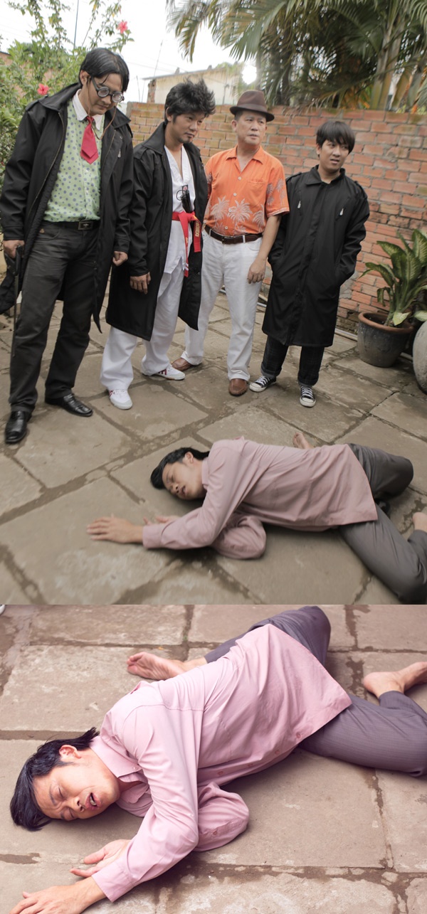 | Hoài Linh đã bị "bè lũ Nhật Cường" đánh cho lại nằm sõng soài dưới đất. |