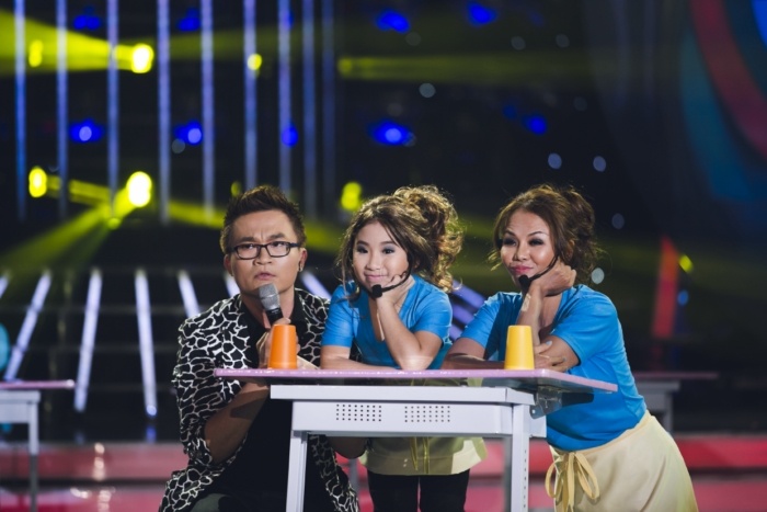 Nói về tiết mục vừa hát vừa múa ly, giám khảo Hồng Vân hào hứng nhận xét: "Cô thấy con có một năng khiếu bẩm sinh để làm nghệ thuật vì từng nhịp, tiết tấu, biểu cảm bài hát đã ăn vào cơ thể của con. Cô rất ngưỡng mộ hai cô cháu". |