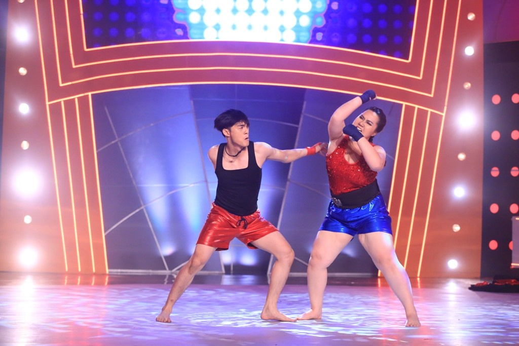 Minh Trang - Minh Hiền có những bước nhảy lôi cuốn trên nền nhạc Shake It Off. Hoài Linh và John Huy phấn khích trước vũ đạo hấp dẫn của bà mẹ 2 con. Biên đạo nổi tiếng cho rằng, đây là bài nhảy anh thích nhất trong chương trình. Tuy nhiên, vì nữ thí sinh giảm chưa đến 1 kg nên Đàm Vĩnh Hưng không hài lòng. |