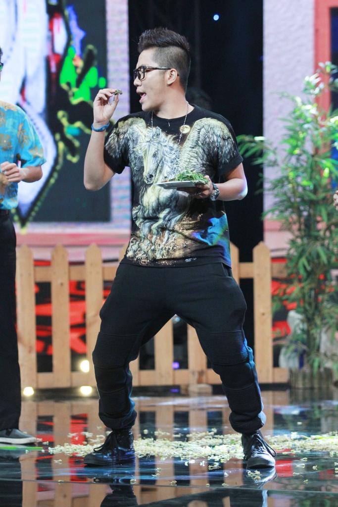 | Đến hội quán vào lúc chiều tối, Hoàng rapper đóng vai người yêu cô chủ Dương Cẩm Lynh. Tại đây, anh được tiếp đón nồng nhiệt và buộc phải thưởng thức những món ăn trong các tình huống khó. Đầu tiên, nam ca sĩ được “bạn gái” yêu cầu vừa nhảy hip hop vừa ăn ốc. |
