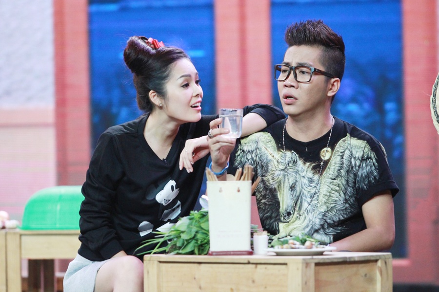 | Trong phần thực đơn buổi sáng, Quang Đại lạc vào một gia đình thổ dân, bị buộc phải nhảy một điệu nhảy thổ dân “không giống ai” theo sự hướng dẫn của vợ chủ quán Ngọc Lan. |