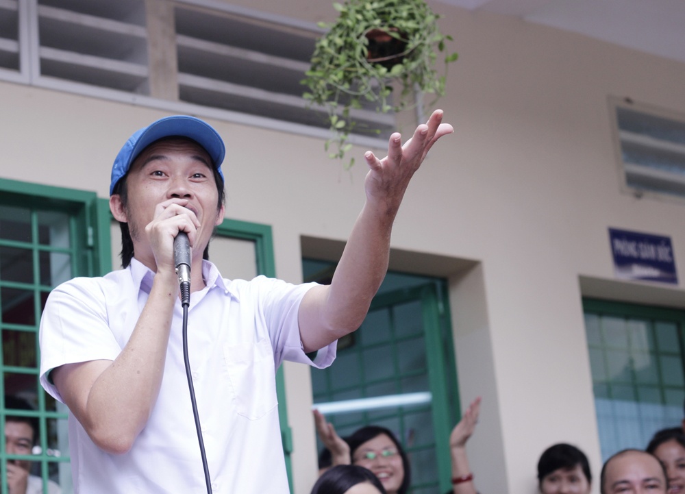 Khi nhìn thấy các bạn học sinh thậm chí chạy ra tận sân trường để ngắm nhìn thần tượng, Hoài Linh đã nhiệt tình đến gần các bạn để chụp ảnh chung. Anh còn mang máy tính bảng đến ô cửa sổ lớp học để nhờ các bạn tư vấn xem nên chia sẻ ảnh nào lên fanpage khiến thầy cô lẫn cán bộ nhân viên trong trường đều thấy nam danh hài gần gũi, đáng yêu hơn.