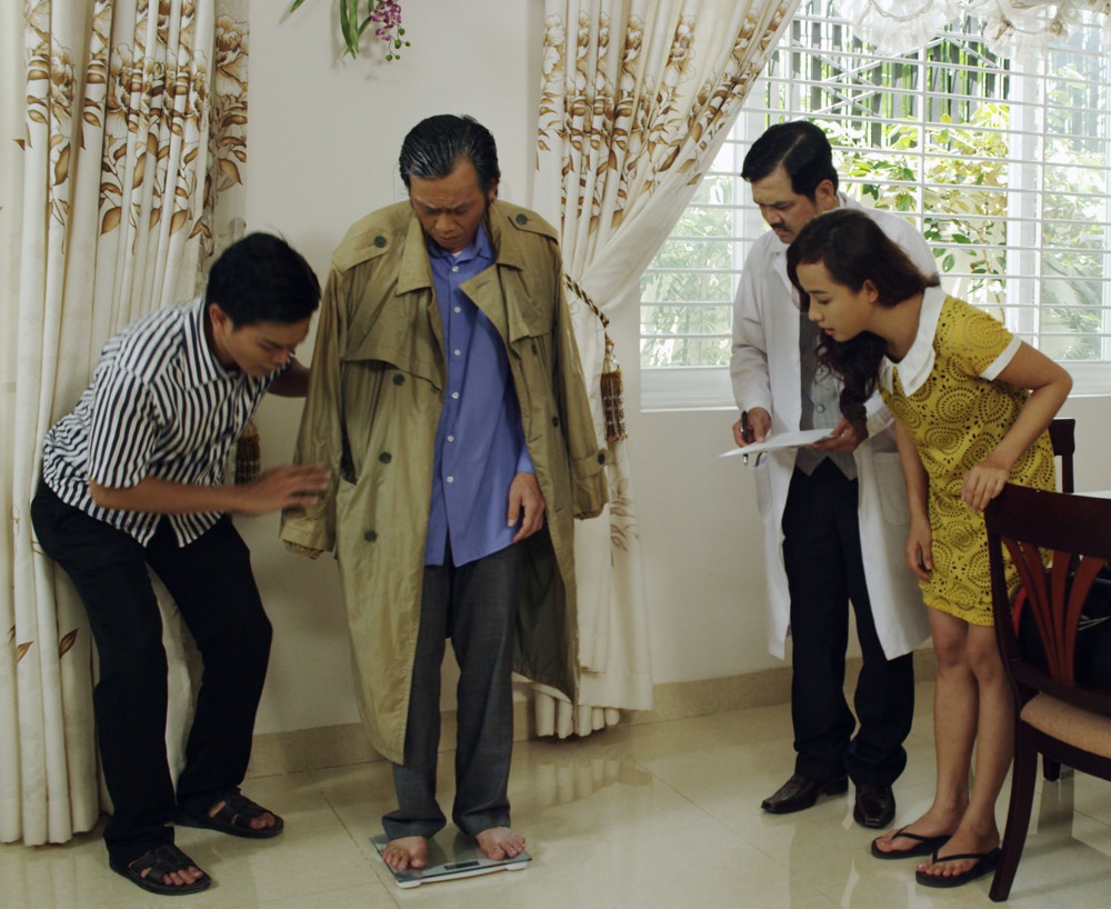 Đến lượt cô chị Hai (Trịnh Kim Chi) lại sòng phẳng rõ ràng, chìa ngay chiếc cân điện tử trước mặt cha và cậu em, bảo phải cân kiểm tra trước khi cô nhận nuôi cha. |