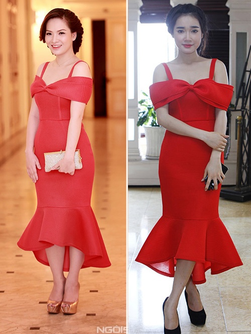 | Bà mẹ hai con Đan Lê nhận được nhiều lời khen về trang phục dự sự kiện hợp vóc dáng, làm toát lên vẻ kiêu sa, mặn mà. Tuy nhiên, trước cô, nữ diễn viên Quả tim máu - Nhã Phương cũng sở hữu mẫu váy tương tự, cô diện khi tham dự một sự kiện showbiz vào tháng trước. |