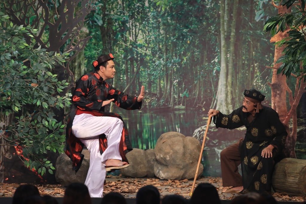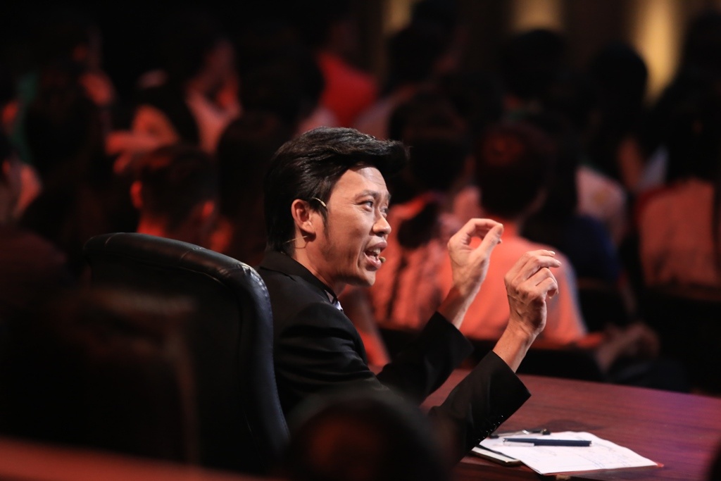 | Theo dõi kỹ lưỡng cách xử lý tình huống của người đồng nghiệp đàn anh, Hoài Linh khẳng định Tấn Hoàng là người dày dặn kinh nghiệm diễn xuất và "bản lĩnh sân khấu của anh không phải dạng vừa đâu". |