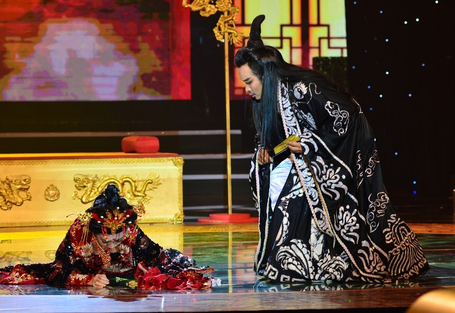 | Tham gia đêm chung kết 5, Thy Trang - Quốc Đại chọn trích đoạn vở Dương Vân Nga,được cho là chọn lựa khá mạo hiểm bởi vở diễn từng được NSND Bạch Tuyết và NSƯT Hoài Linh thể hiện thành công. Thy Trang chia sẻ, cô mất ngủ nhiều đêm khi vào vai Thái hậu Dương Vân Nga. Thậm chí, khi bước ra sân khấu cô đào cải lương còn không dám nhìn mặt NSND Bạch Tuyết. Dù vậy, phần thi nhận được số điểm tương đối là 26. |