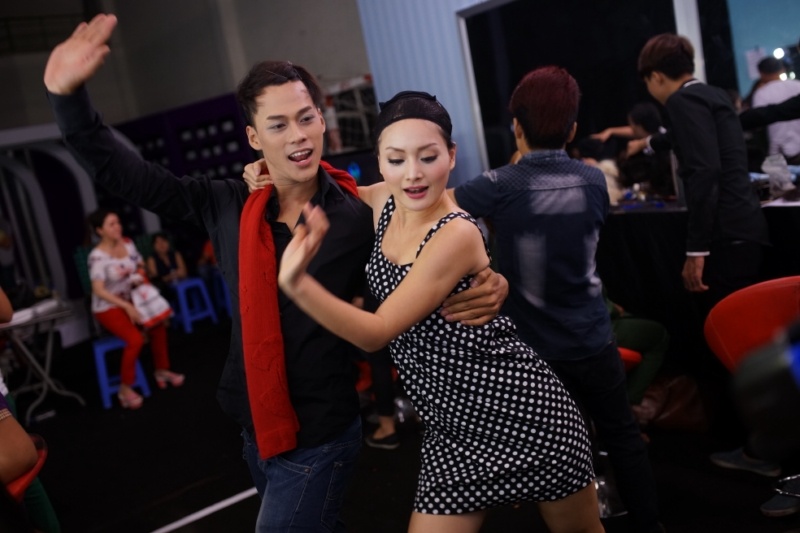 Ngọc Luân hỗ trợ Lan Phương trong phần vũ đạo. |