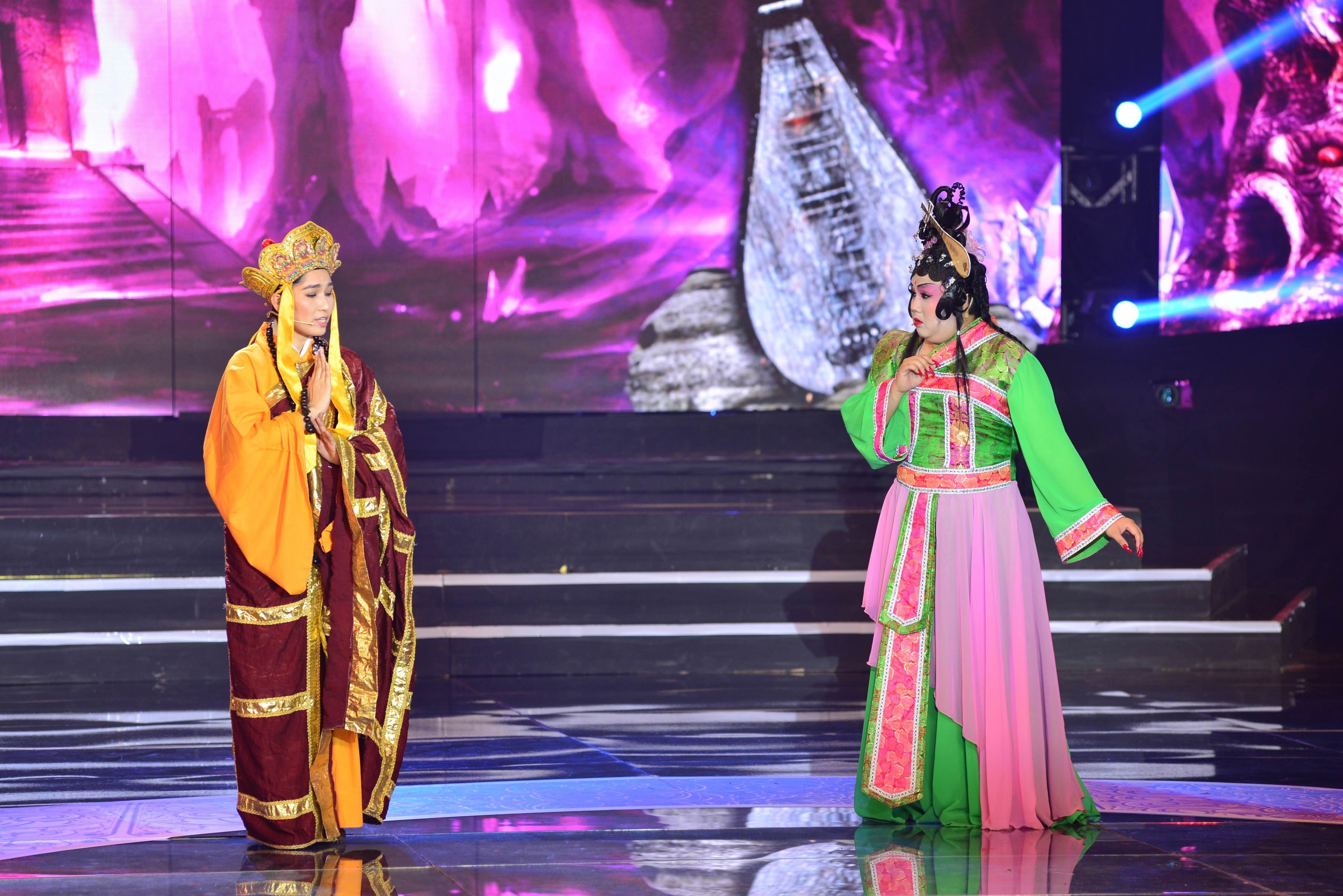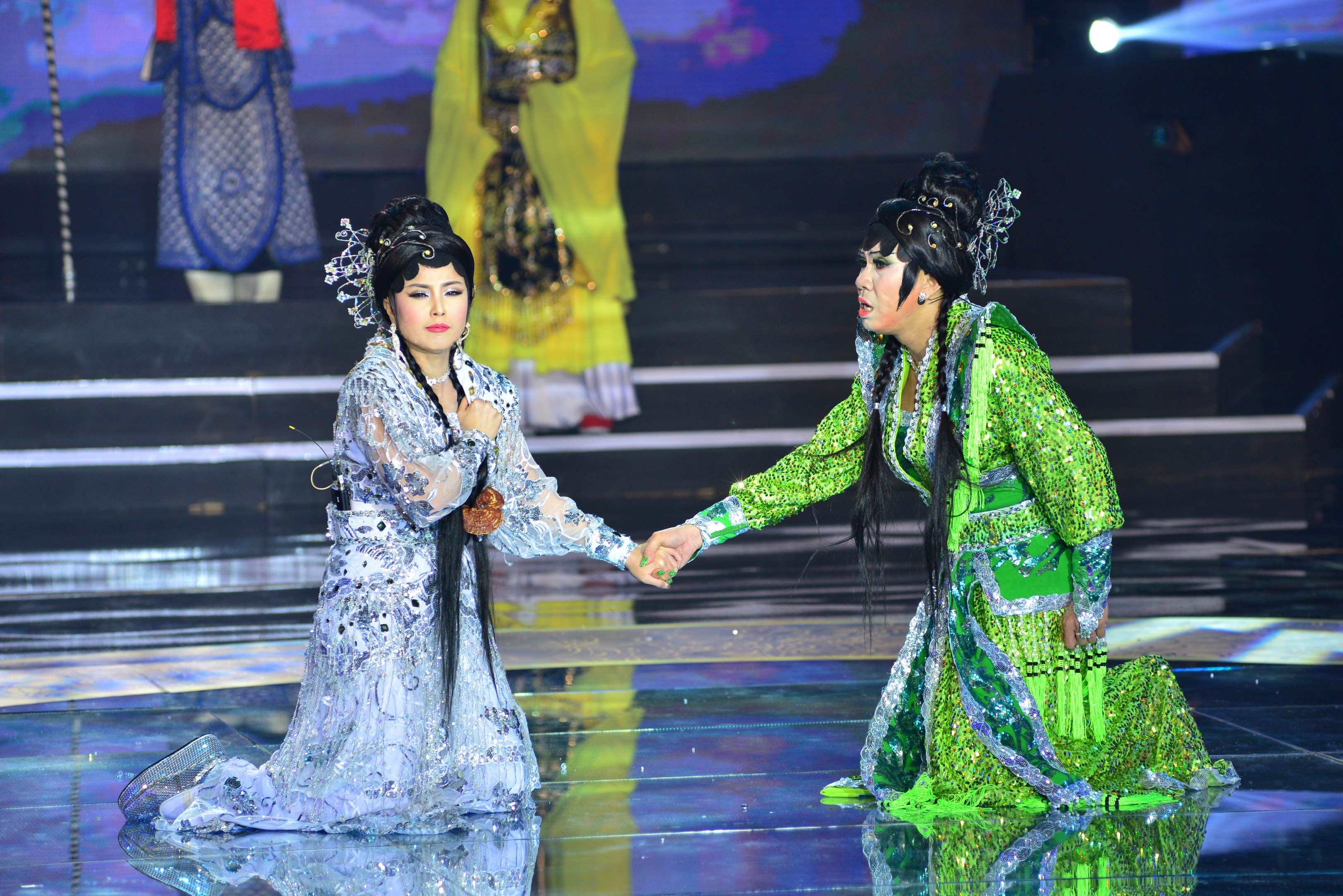 | Mở đầu đêm chung kết 6, Như Huỳnh – Gia Bảo đã khiến khán giả cười nghiêng ngả với tiết mục Đại chiến Tỳ Bà Tinh, một tác phẩm được cải biên từ Tây Du Ký. Khác với bản gốc, Tỳ Bà Tinh phiên bản mới hóa thân hình ảnh “soái ca” Đường Tăng (Như Huỳnh) và nàng yêu quái “rất có gu” (Gia Bảo thủ vai). |