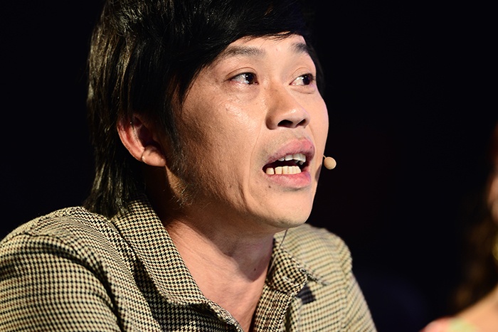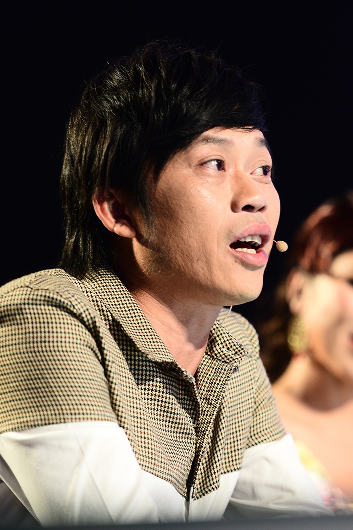 Trấn Thành tung hứng với Hoài Linh chọc quê Chí Anh vì anh muốn làm con chim "thích bay về tổ". Giám khảo khó tính chỉ biết cười trừ. |