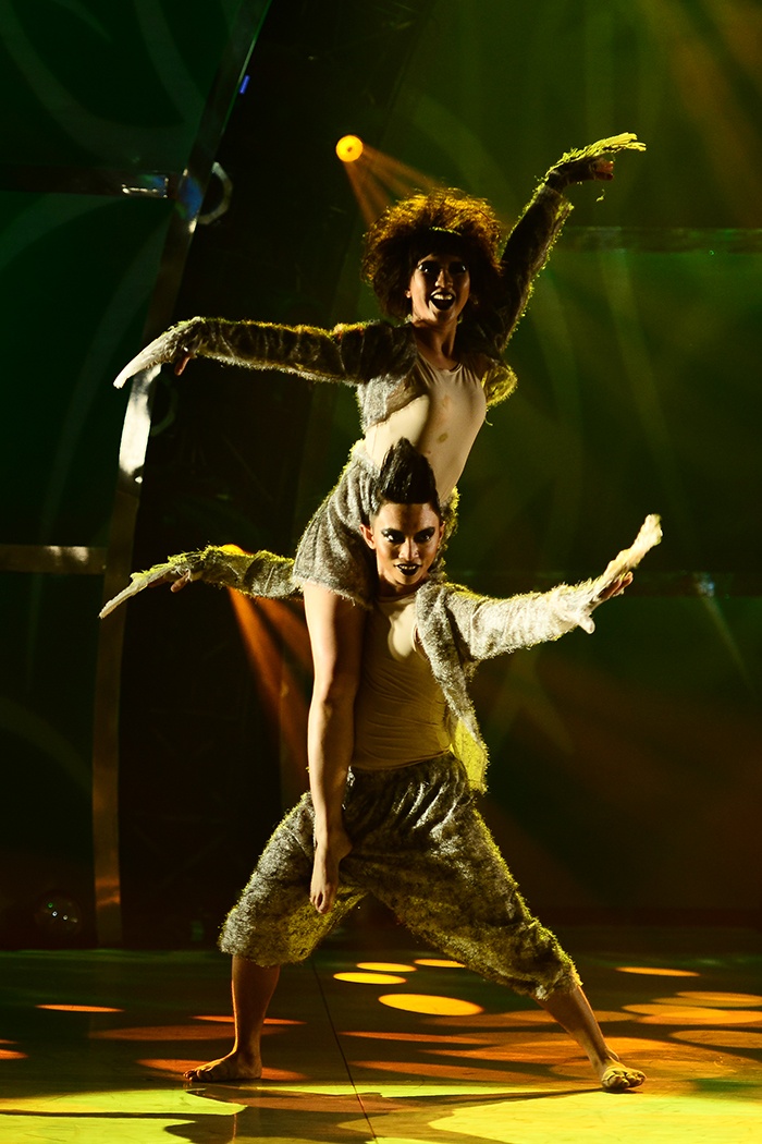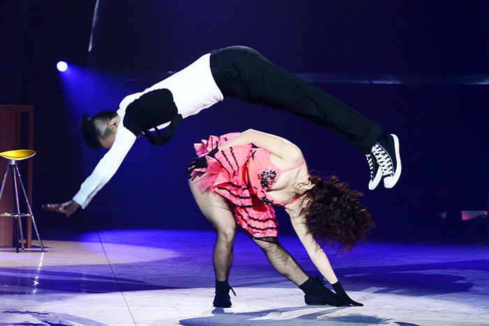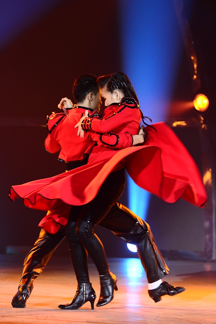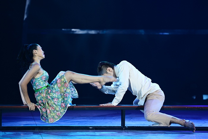 Những động tác nguy hiểm của họ làm khán giả thót tim vì lo sợ. Ngọc Tuấn có sự chắc chắn trong kỹ thuật giúp Ngọc Anh thăng hoa với sự dâng trào trong cảm xúc. Khán giả truyền quay đồng loạt đứng dậy cổ vũ cho tiết mục độc đáo này. |