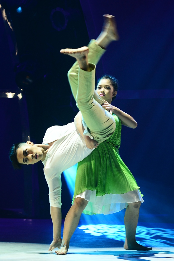 Trên nền nhạc Two birds phù hợp với nội dung câu chuyện, hai “con chim nhỏ” đã thể hiện thành công tiết mục múa đương đại của mình. |