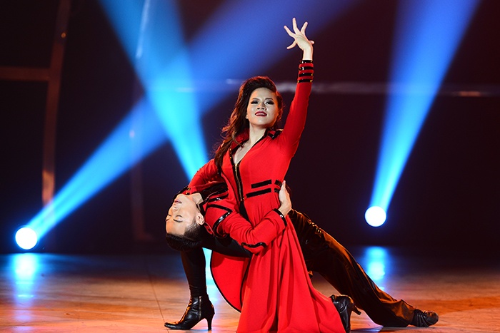 Thể loại nhảy này đòi hỏi cả hai thí sinh phải mang tới một sân khấu sôi động, phóng khoáng nhưng cũng không ít động tác bê đỡ khó. Thùy Vân tiếp tục nhận được cơn mưa lời khen từ Chí Anh: “Hai tuần qua Vân đã chịu rất nhiều sức ép. Nhưng với vũ điệu bachata này, em đã lột xác thành nữ vũ công Châu Mỹ Latin nóng bỏng”. |