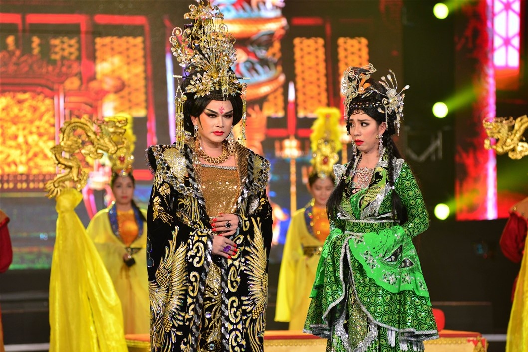 | Chọn trích đoạn Lưu Kim Đính chiêu phu, Thy Trang - Quốc Đại đầu tư kĩ lương về trang phục. Cách xử lý tình huống duyên dáng, nghiêm túc đã chinh phục được thiện cảm từ các giám khảo. |