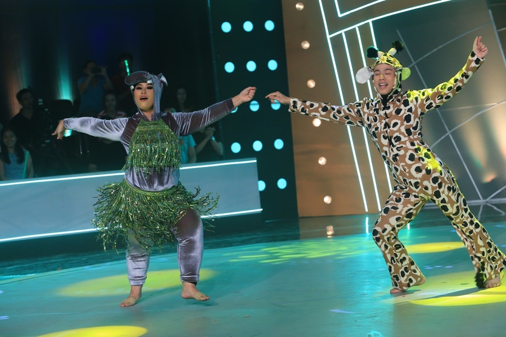 Trên nền nhạc Mi mi mi, Anh Kiệt và Kim Phụng mang đến tiết mục vui nhộn với nhiều kỹ thuật khó. Hoài Linh phát biểu: “Các bạn đưa lửa nhiều quá nhưng tôi thích động tác ‘đập tan mỡ bụng’ của Anh Kiệt". Tổng điểm dành cho chàng trai là 9,1 giúp anh có mặt trong top an toàn. |