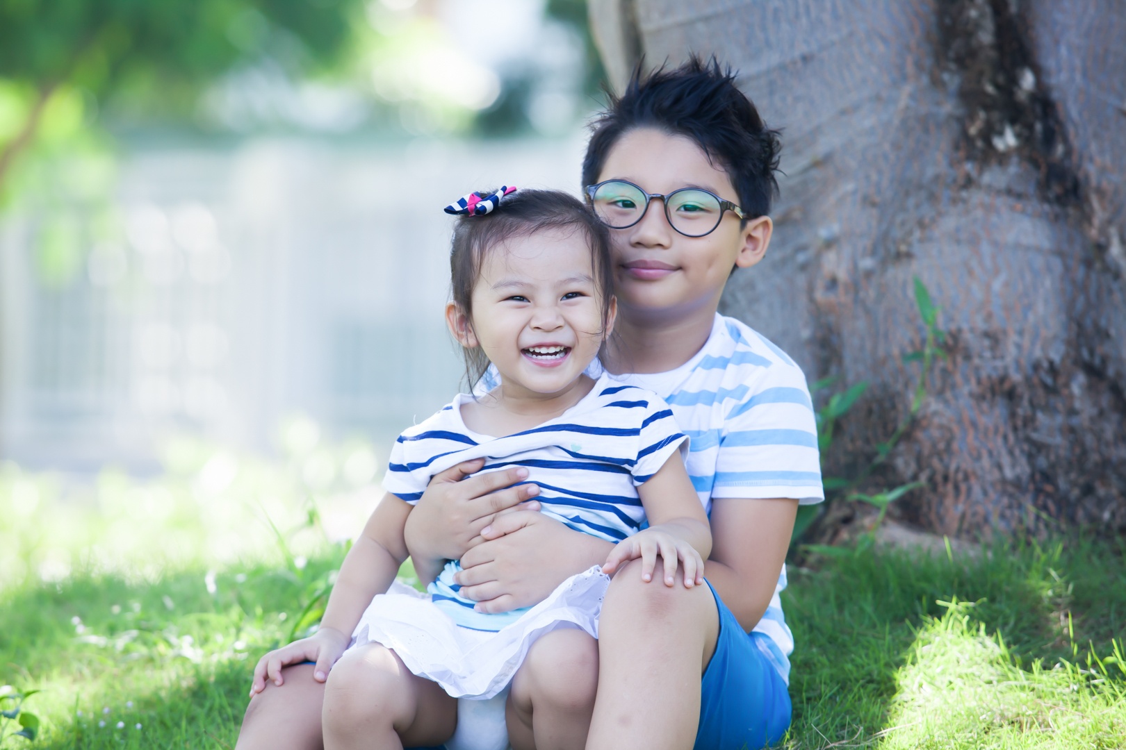 | Hình ảnh cậu con trai 7 tuổi của Hoàng Bách quấn quýt bên em gái Minh Hà. |