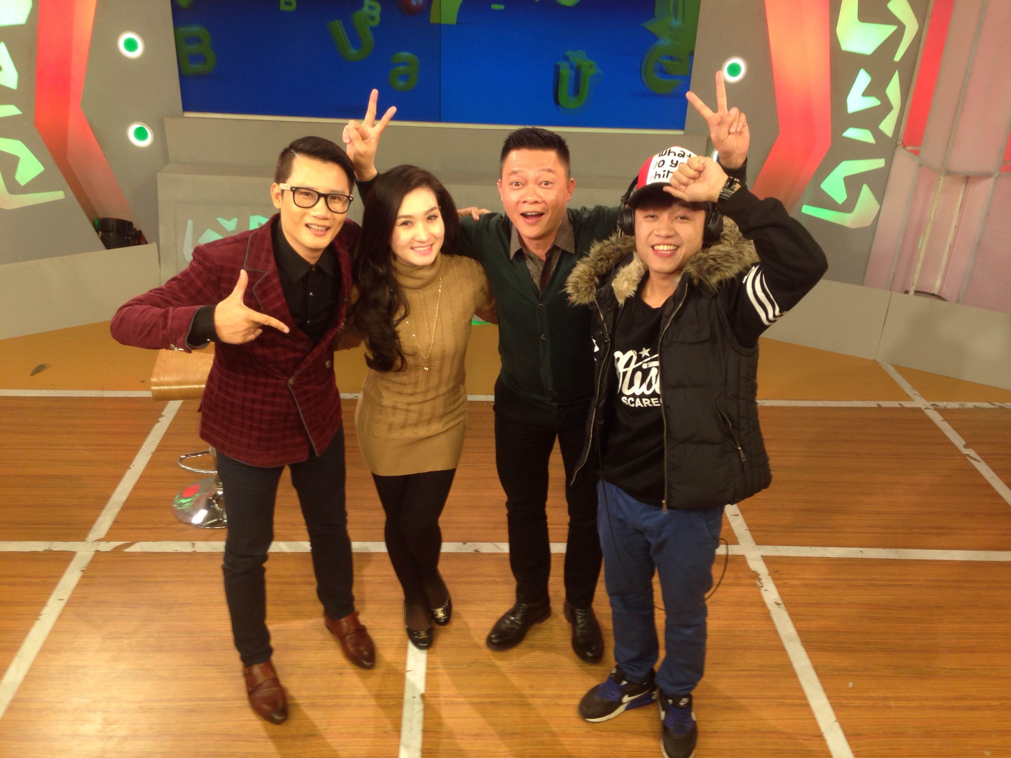 Hoàng Bách chụp ảnh kỷ niệm với đầu bếp Thanh Huyền, bếp phó Quang Minh và DJ Tuấn Su sau khi có một giờ vui vẻ tại căn bếp của VTV6.