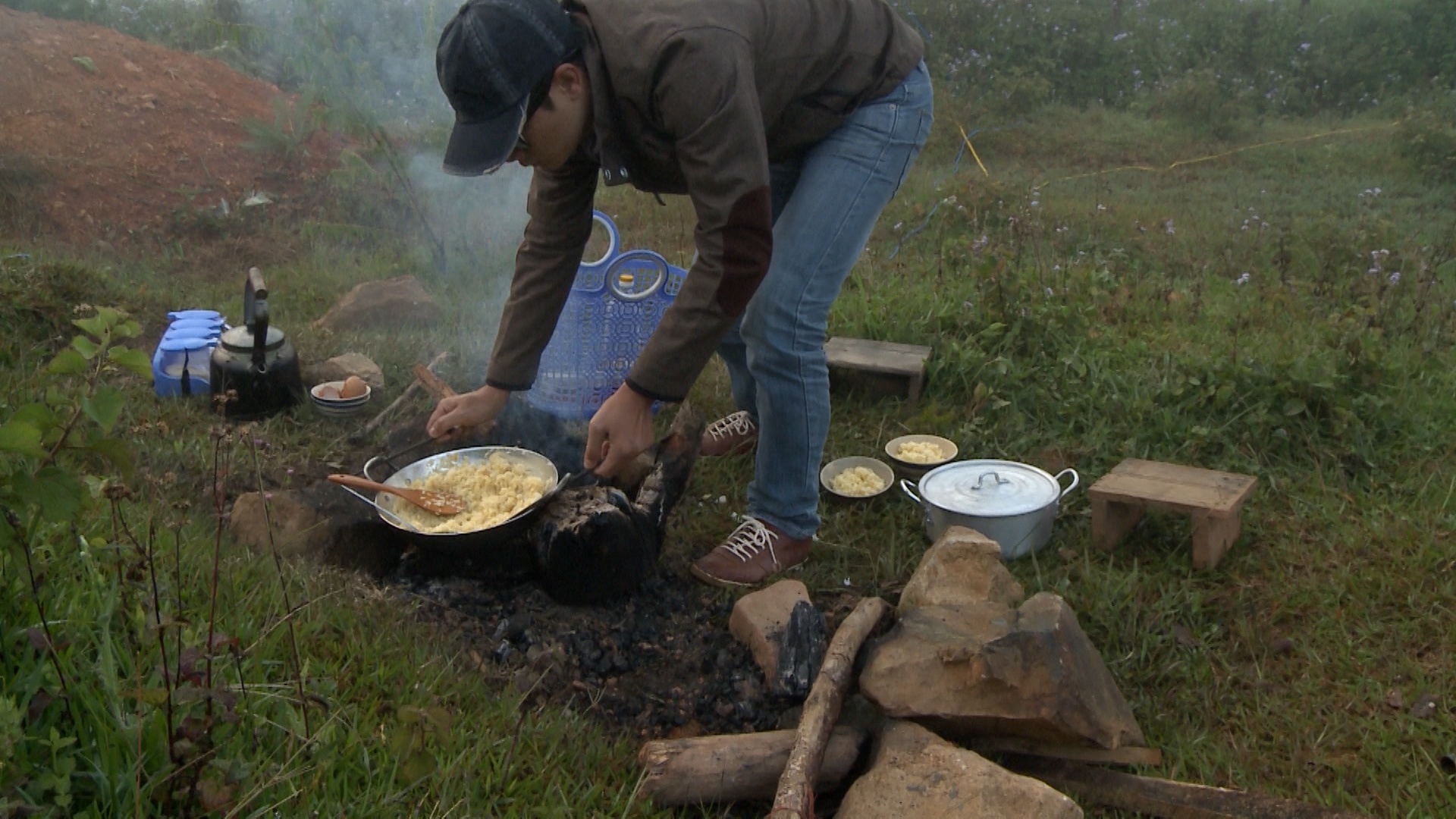 Minh Khang thức dậy, đánh răng, nhóm than, hơ ấm và chuẩn bị cho con gái Suti. Các gia đình khác cũng rục rịch dậy chuẩn bị cho hành trình tiếp theo.