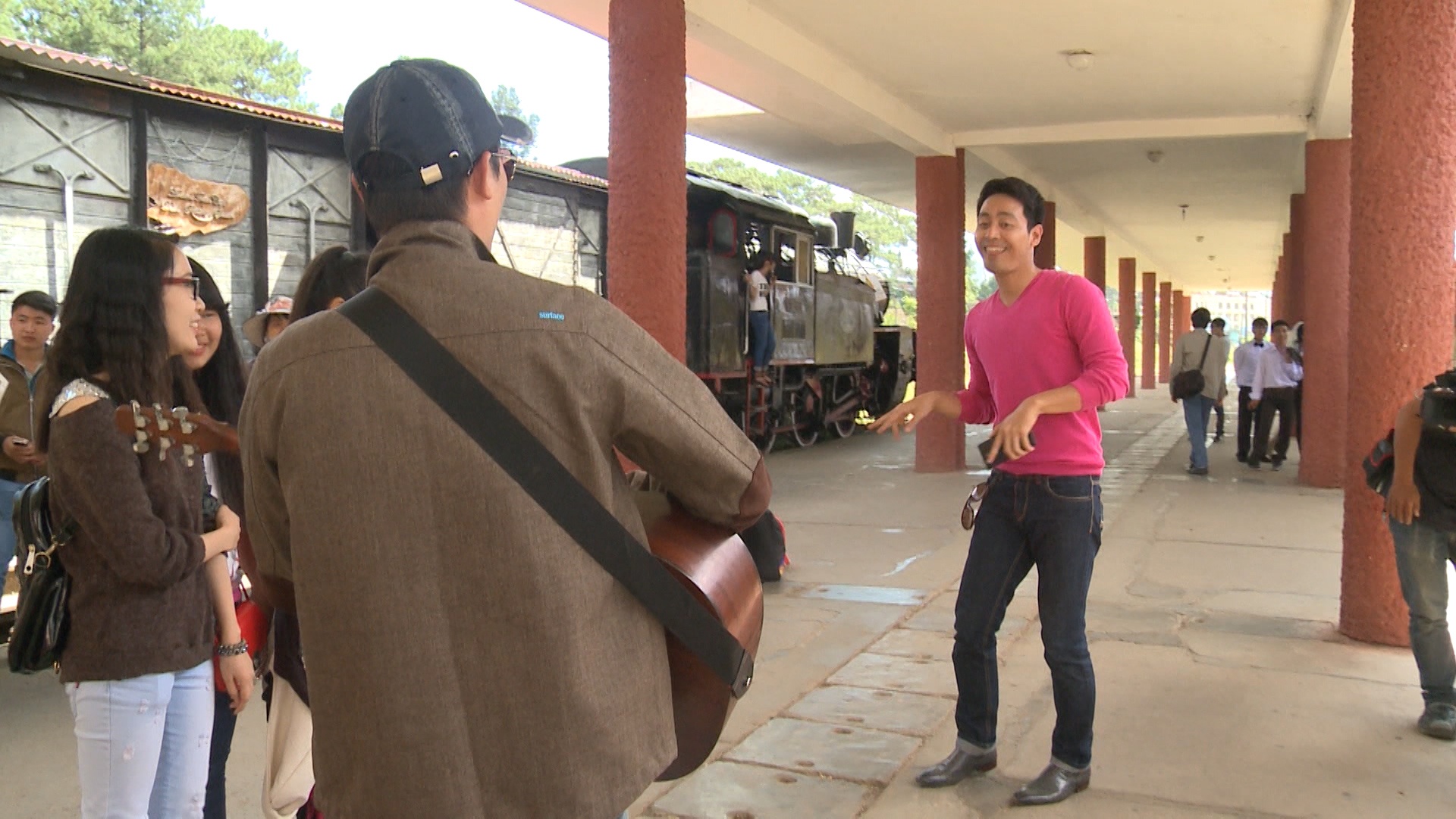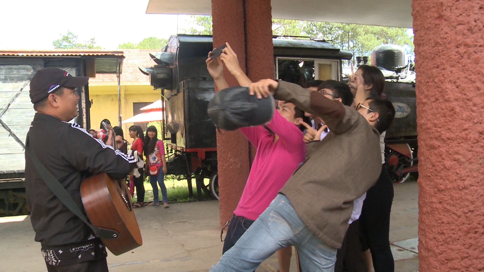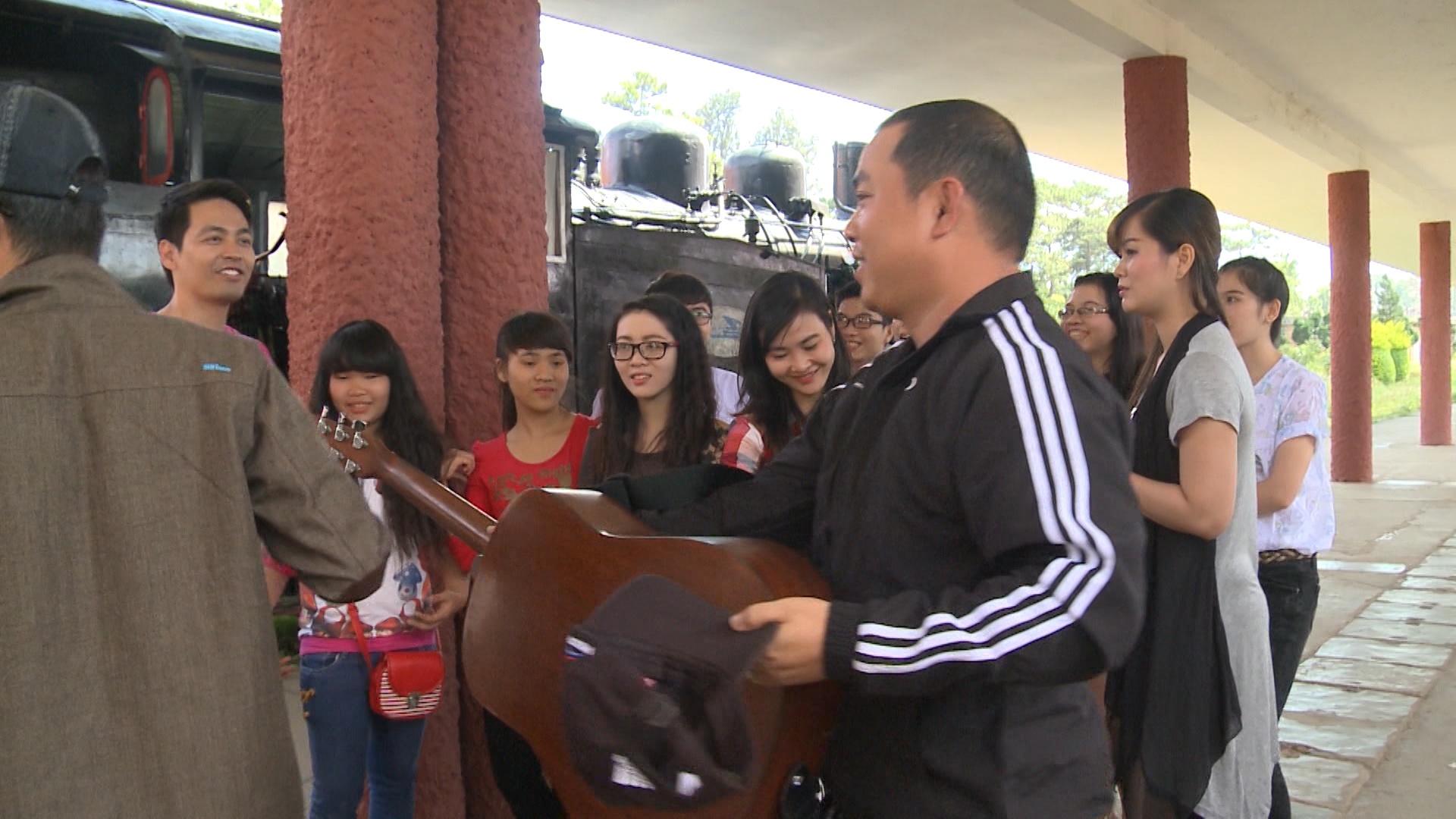 | Minh Khang mượn đàn của Hoàng Bách để hát tiếp bài Đứa bé do chính anh sáng tác và xin tiền mọi người với lý do ủng hộ trẻ em cơ nhỡ. |