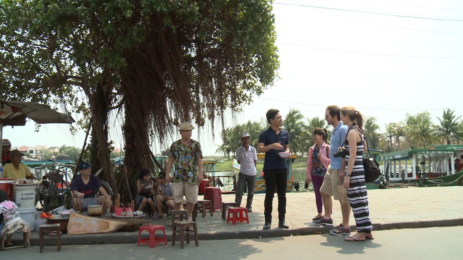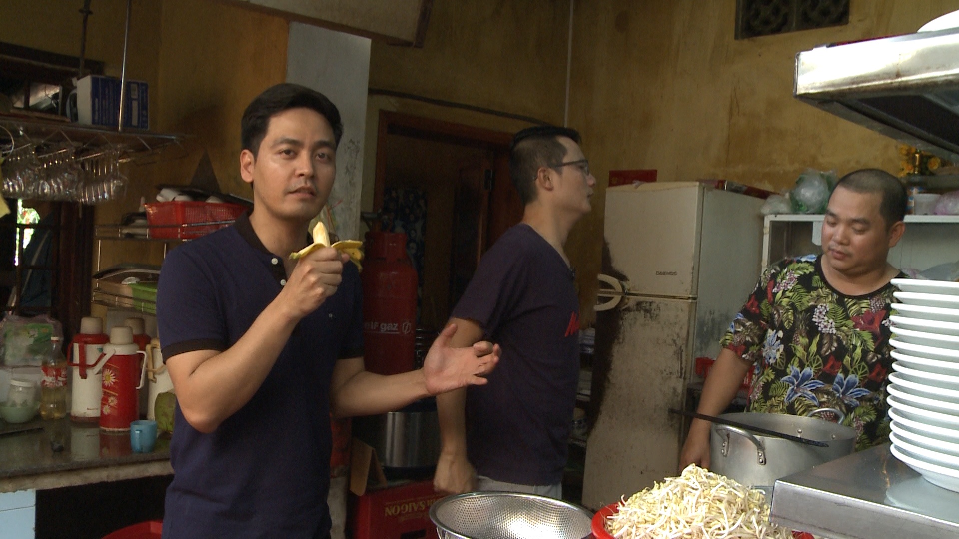 Nhạc sĩ Minh Khang, MC Phan Anh và ca sĩ Hoàng Bách được chủ nhà hàng cao lầu rất nổi tiếng ở Hội An hướng dẫn cách chế biến món ăn và cung cấp cho các đồ dùng cần thiết để đi bán hàng.