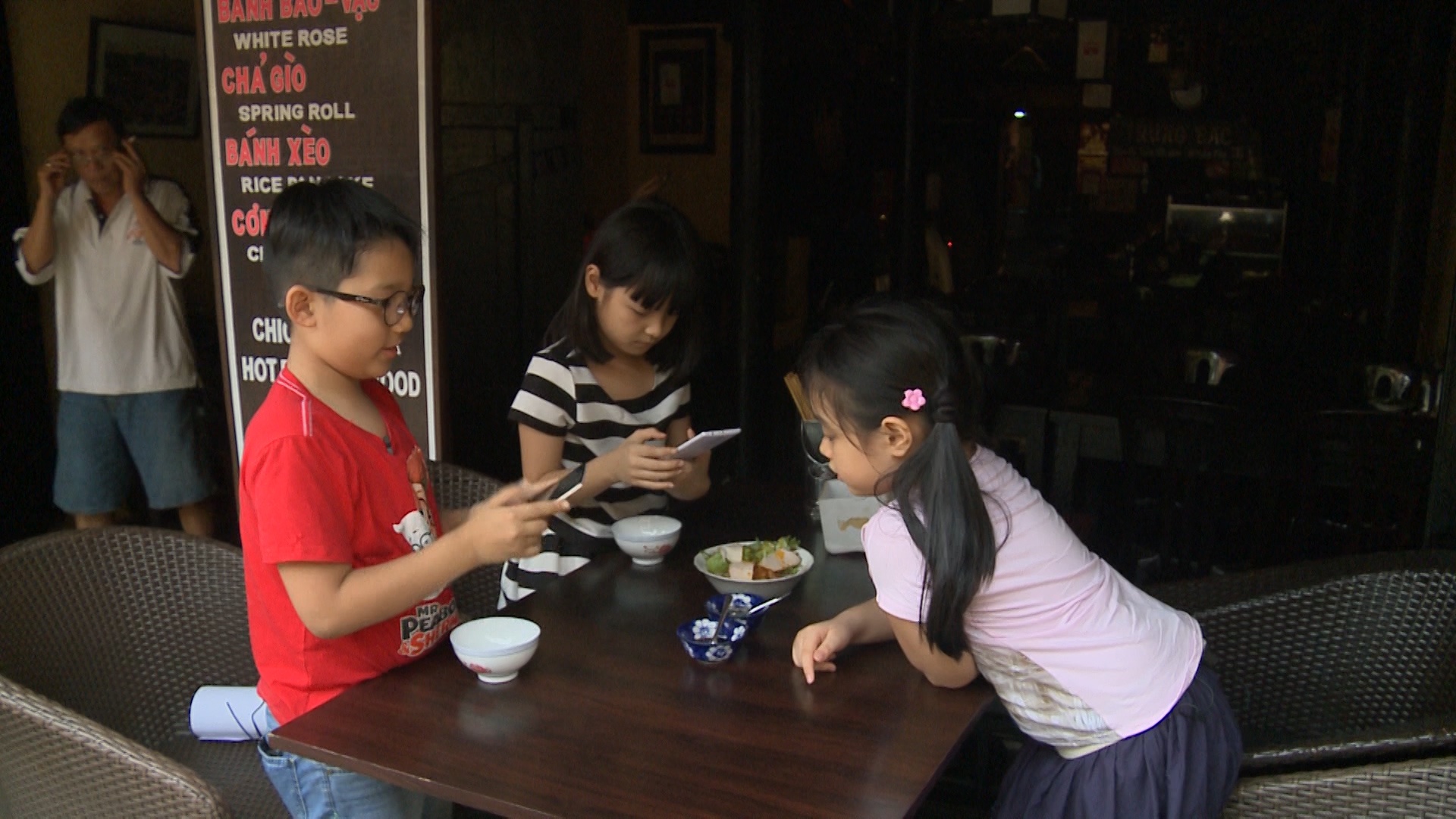 Ba nhóc tỳ rất thích thú với những món ăn địa phương. Các bé thưởng thức, chụp hình và mang về cho Bờm rất nhiều đồ.