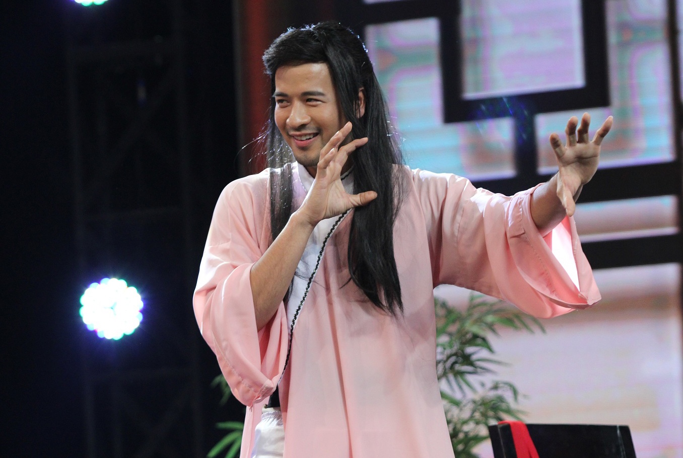 | Không vượt qua thử thách thái thịt, nam diễn viên bị con gái ông chủ - Dương Cẩm Lynh yêu cầu trèo lên bàn và nhảy vũ điệu Ấn Độ. Diễn viên hài uốn éo, tự tin khoe vũ đạo uyển chuyển trên nền nhạc sôi động. Đỉnh điểm của thử thách là Hoàng Mập phải vừa nhảy dây vừa cắn hạt dưa. |