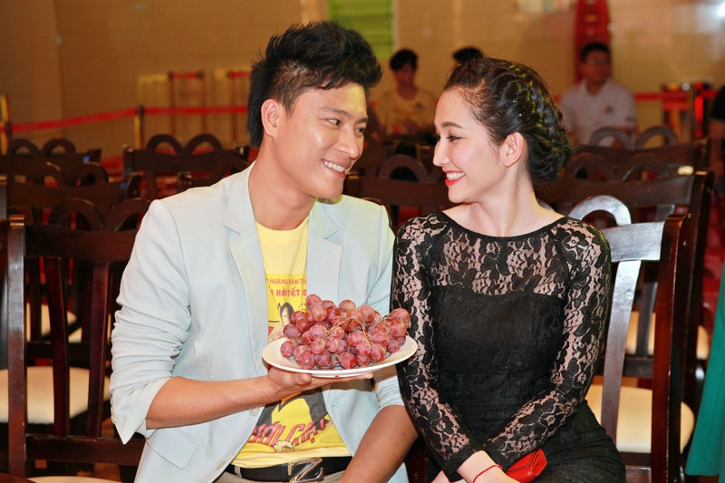 Kim Hiền và Đông Dương tạo dáng trước ống kính. |