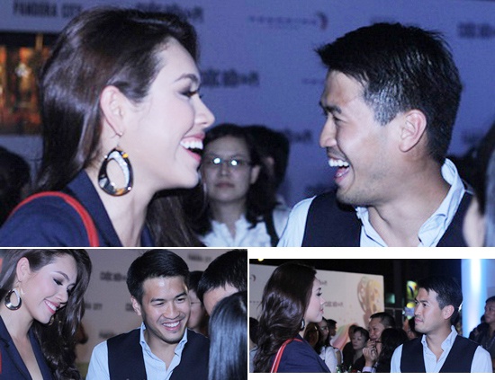 Xuất hiện cùng cô là nhạc sĩ Dương Khắc Linh. Cặp đôi này luôn xuất hiện cùng nhau tại các sự kiện. |