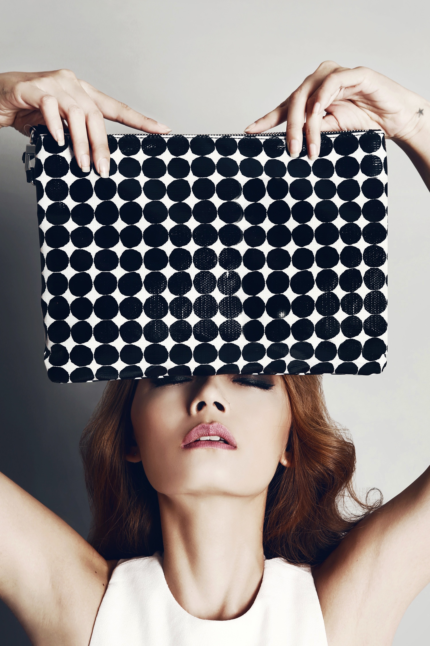 | Phụ kiện túi xách chấm bi trắng đen tôn hình ảnh lịch thiệp. |