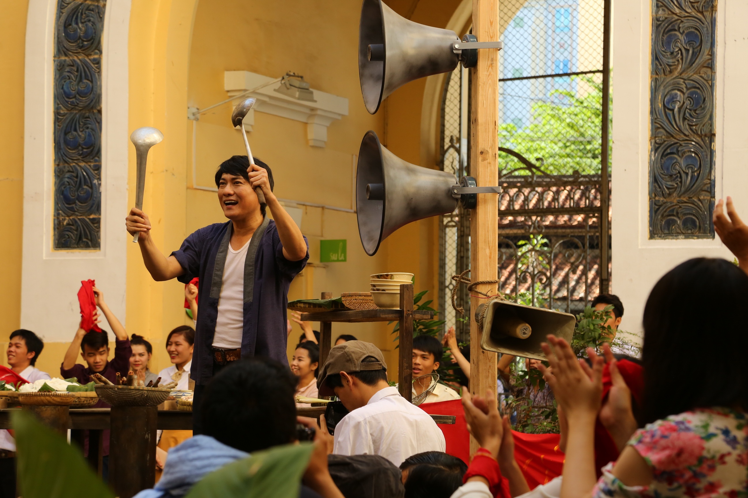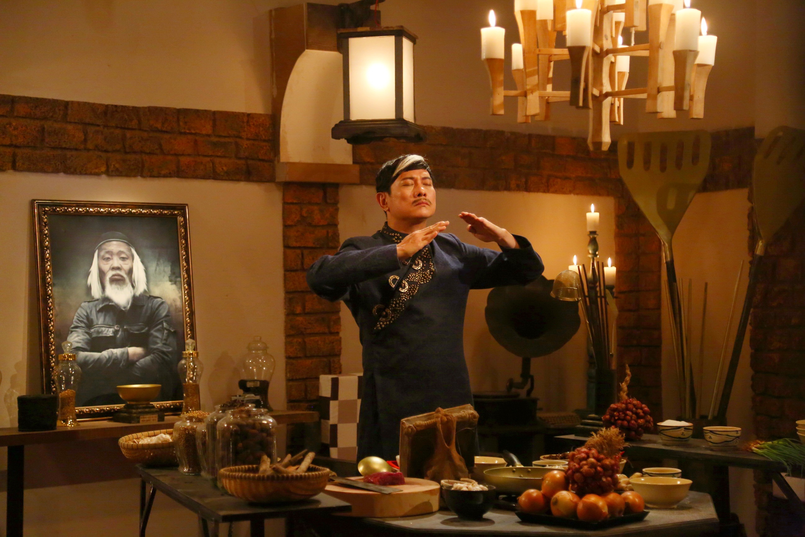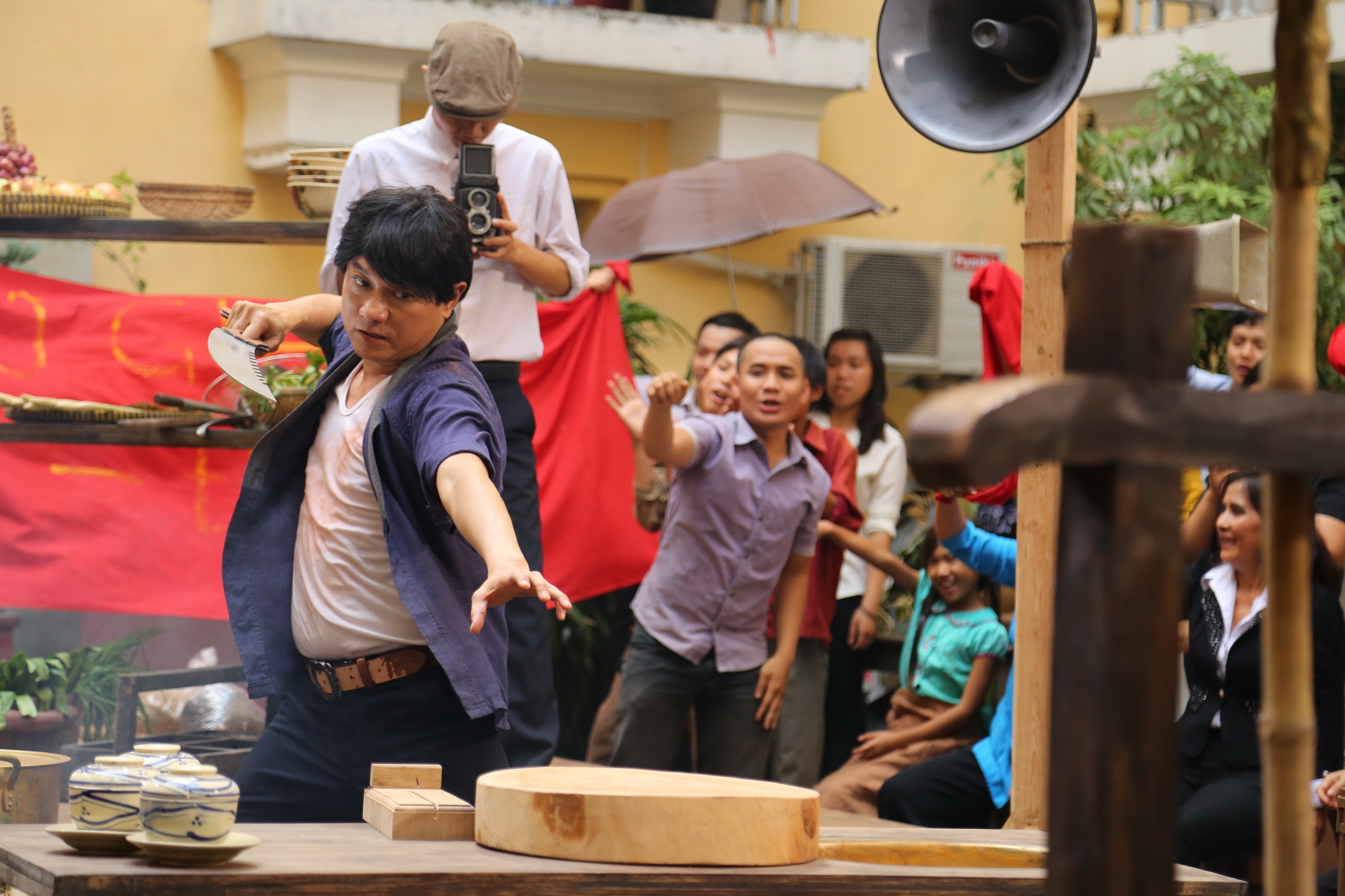 Binh khí trong phim dành cho các nhân vật là các... dụng cụ để nấu phở. Hoàng Phúc rất hào hứng trước trải nghiệm mới.
