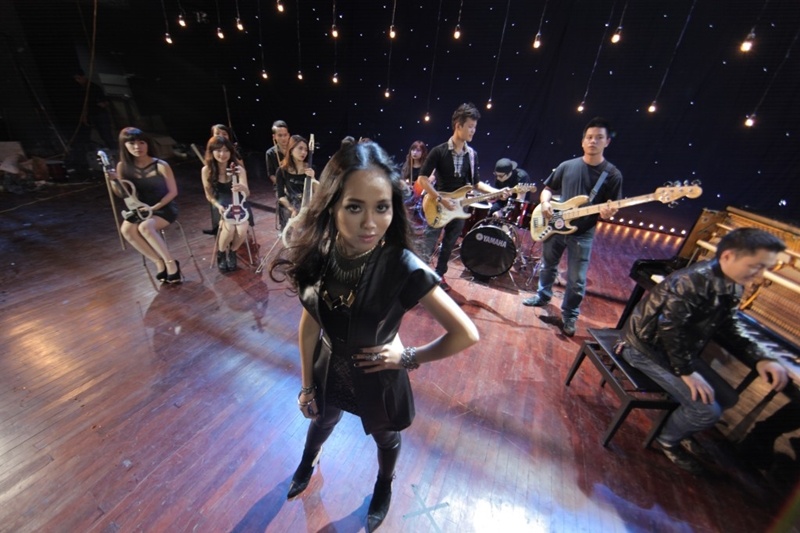 | Xuất hiện cùng Hoàng Quyên trong MV Sóng ngang là ban nhạc và dàn dây giao hưởng tạo thêm nhiều nét riêng cho MV đầu tay của cô. |